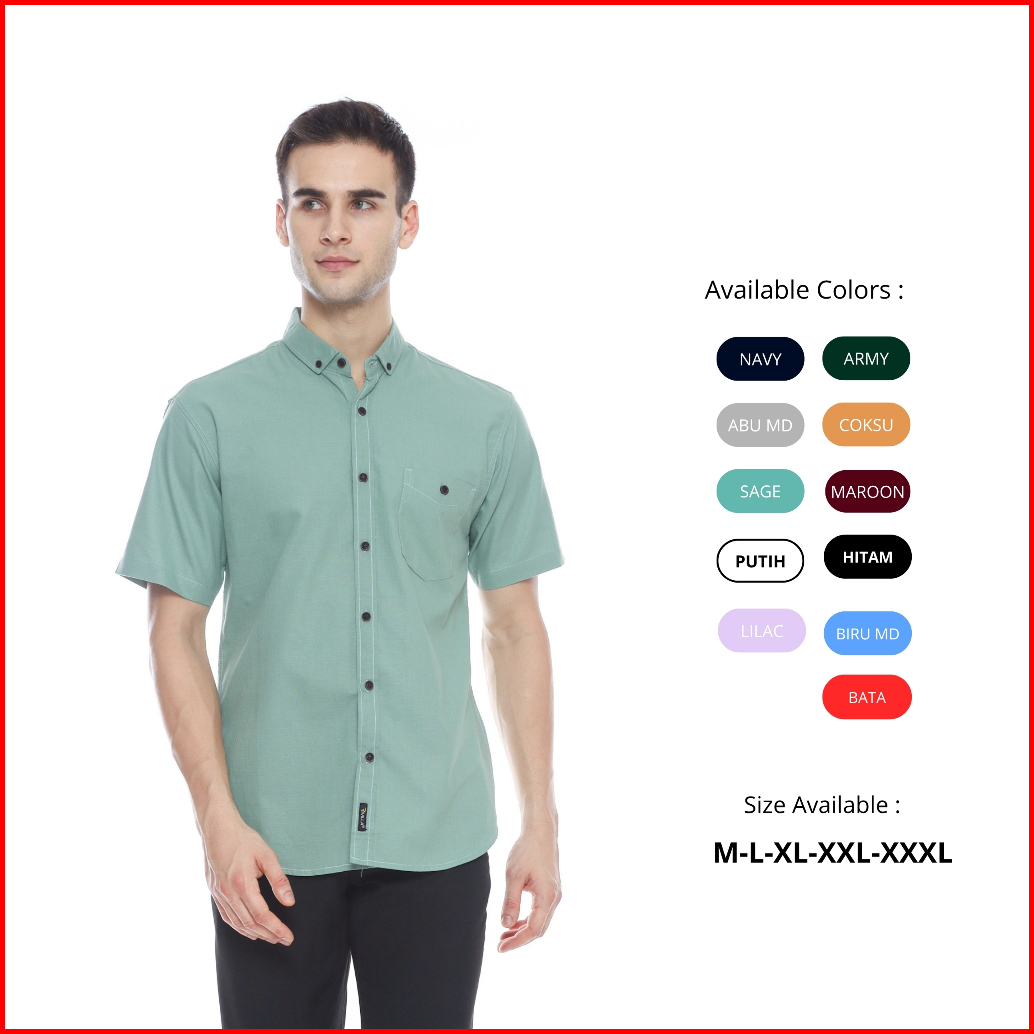 Rivilla Kemeja Casual Pria Sage Green Lengan Pendek Slim Fit
