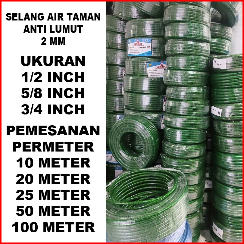 Selang Air 10 Meter Serat Benang Hijau Anti Lumut Tebal 2mm Selang Air Taman 1 2 5 8 3 4 Inch