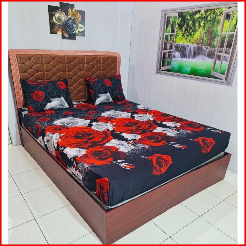 G Sprei 160x200 Homemade Aesthetic Bunga Hitam Kotak Adem Seprei Kasur Set Sarung Bantal