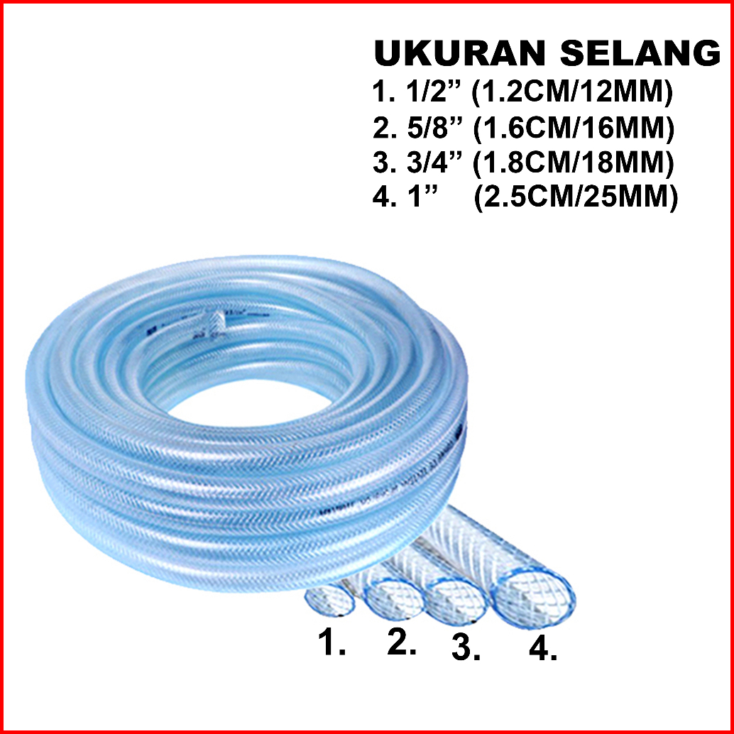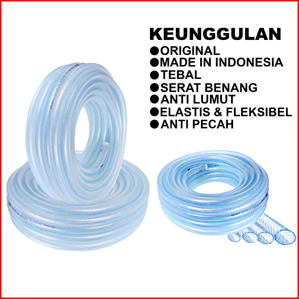 Mega Selang Air 10 Meter 1 2 5 8 3 4 1 Inch Selang Benang Transaparan Pvc Tebal Selang Cuci Motor Cuci Mobil Selang Sira