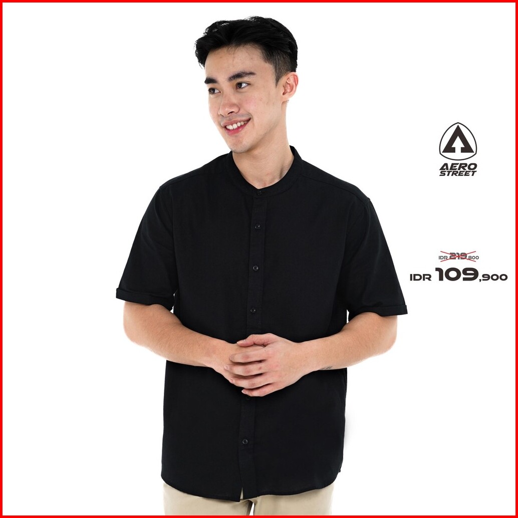 Aerostreet Kemeja Pendek Shanghai Linen Look Esfand Black Qfa4a