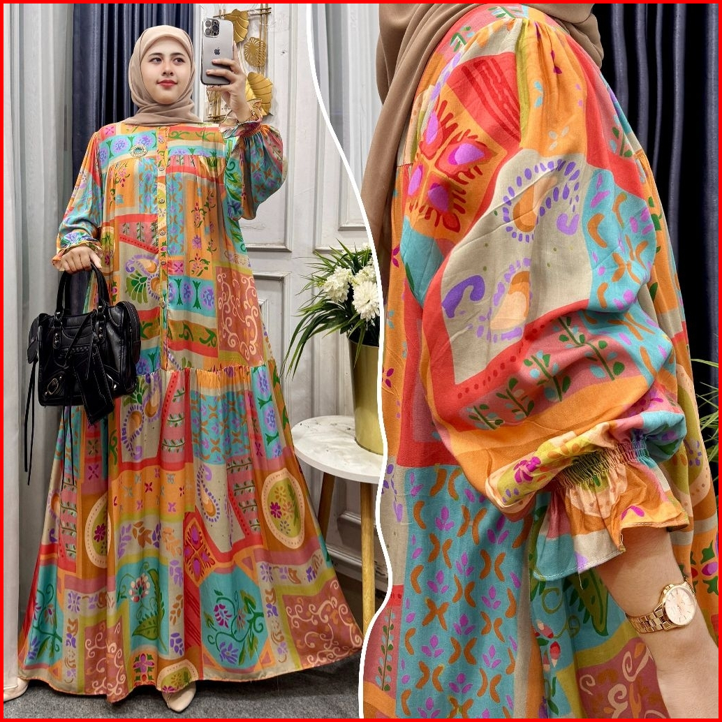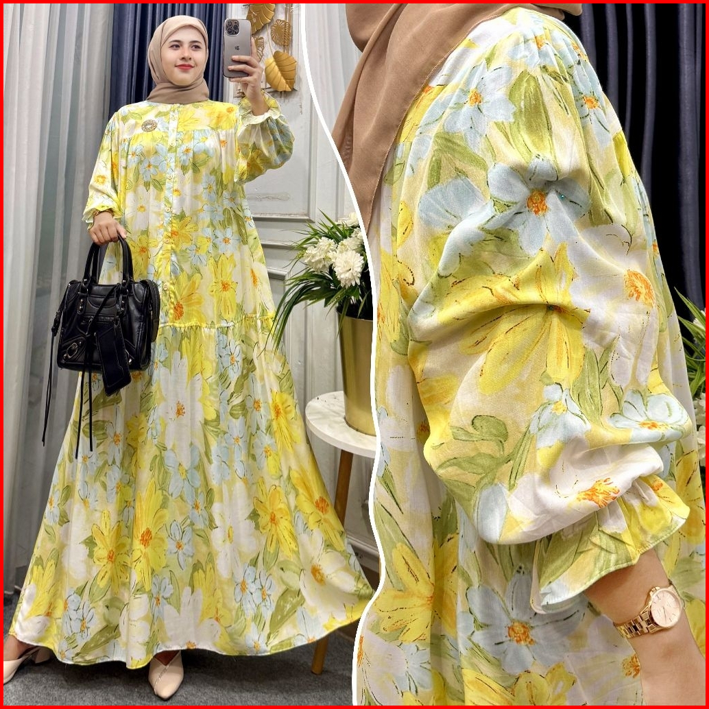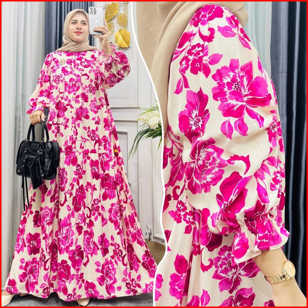 Promo Gamis Arsyila Gamis Lengan Balon Gamis Rayon Premium Lengan