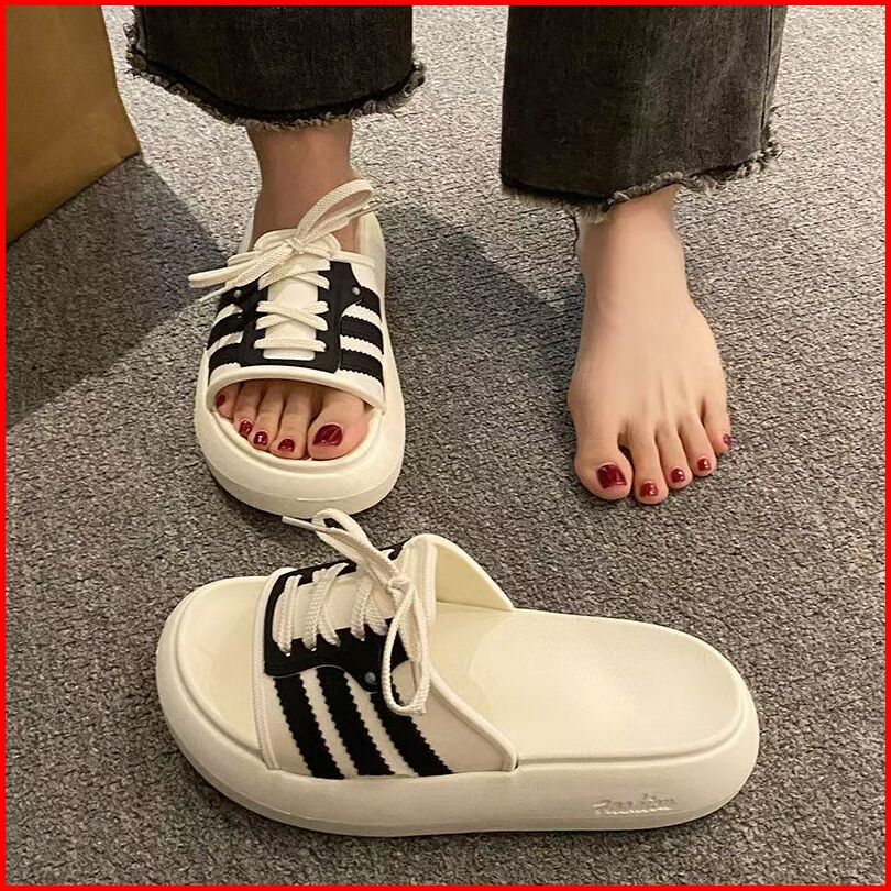 Lateny Sandal Selop Wanita Korea Flats Tebal Empuk Karet Eva Sandal Sepatur Bertali Anti-slip