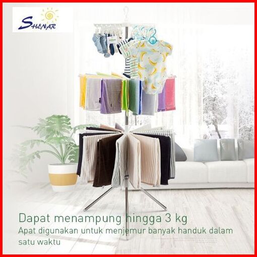 Shenar Rak Jemuran 24 Klip Dan 16 Cabang Jemuran Handuk Baju Bayi Celana Dalam Stainless Steel