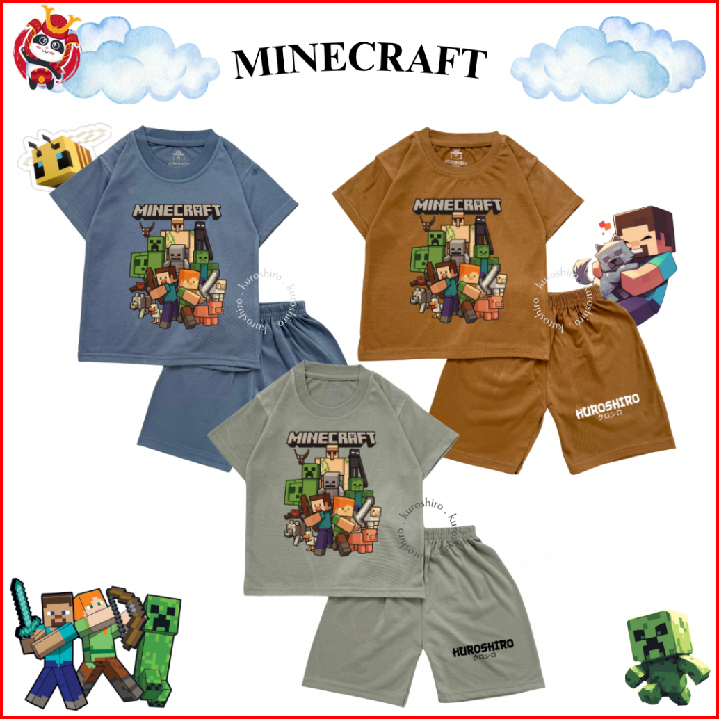 Kuroshiro - Setelan Baju Anak Laki Laki 1-9 Tahun Minecr4ft Kaos Anak Cowok