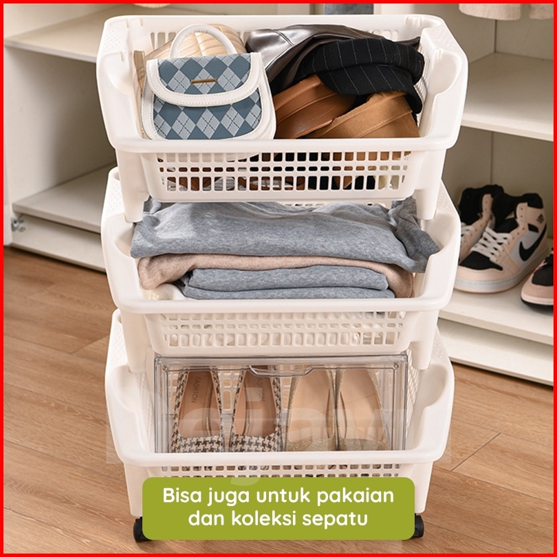 Dejavu Rak Dapur 3-5 Tingkat Dengan Roda Penyimpanan Keranjang Buah Serbaguna Hrk523