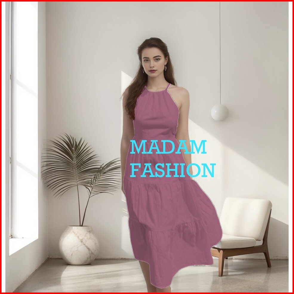 Dress Yossi Leher Tali Casual Santai Pesta Natal Bahan Rayon Twill