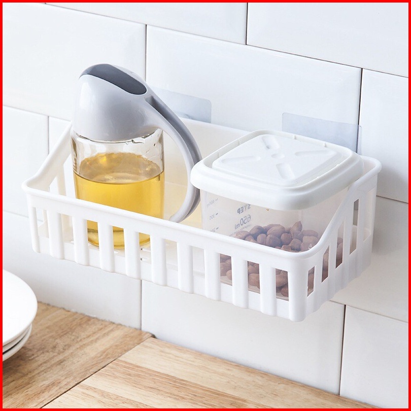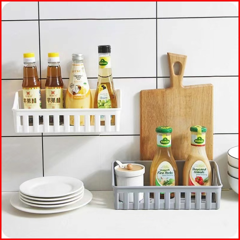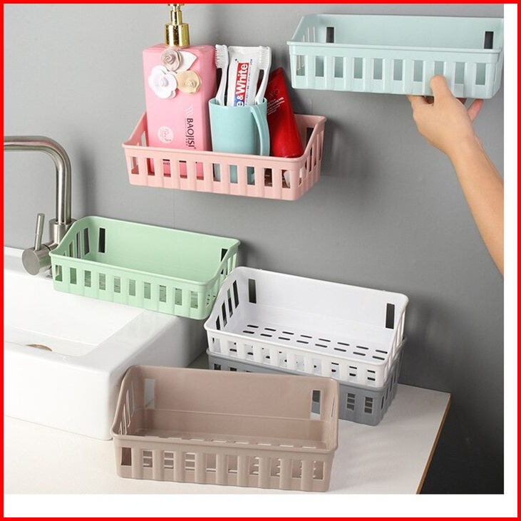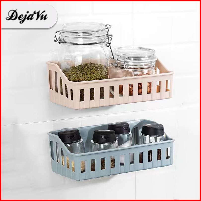 Dejavu Rak Kamar Mandi Tempel Plastik Persegi Rak Dapur Dinding Rak Sabun Mandi Tempat Penyimpanan Kosmetik Hrd322