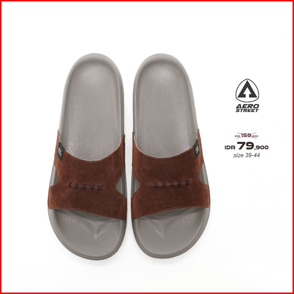 Aerostreet 39-44 Xavier Khaki Coklat - Sandal Sendal Selop Slip On B1baa