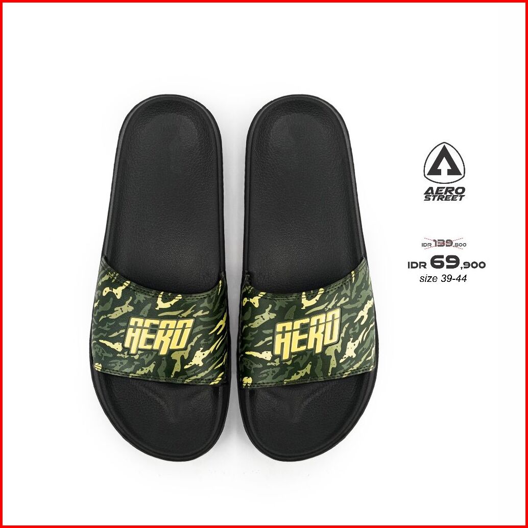 Aerostreet 39-44 Army Hitam Army - Sandal Sendal Selop Slip On Casual Pria Wanita Aero Street 22aaa0