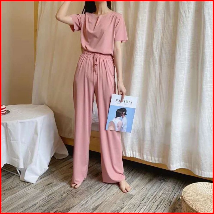 Set Piyama Wanita Polos Set Celana Tangan Pendek Baju Tidur Setelan Lengan Pendek Celana Panjang Cpolos