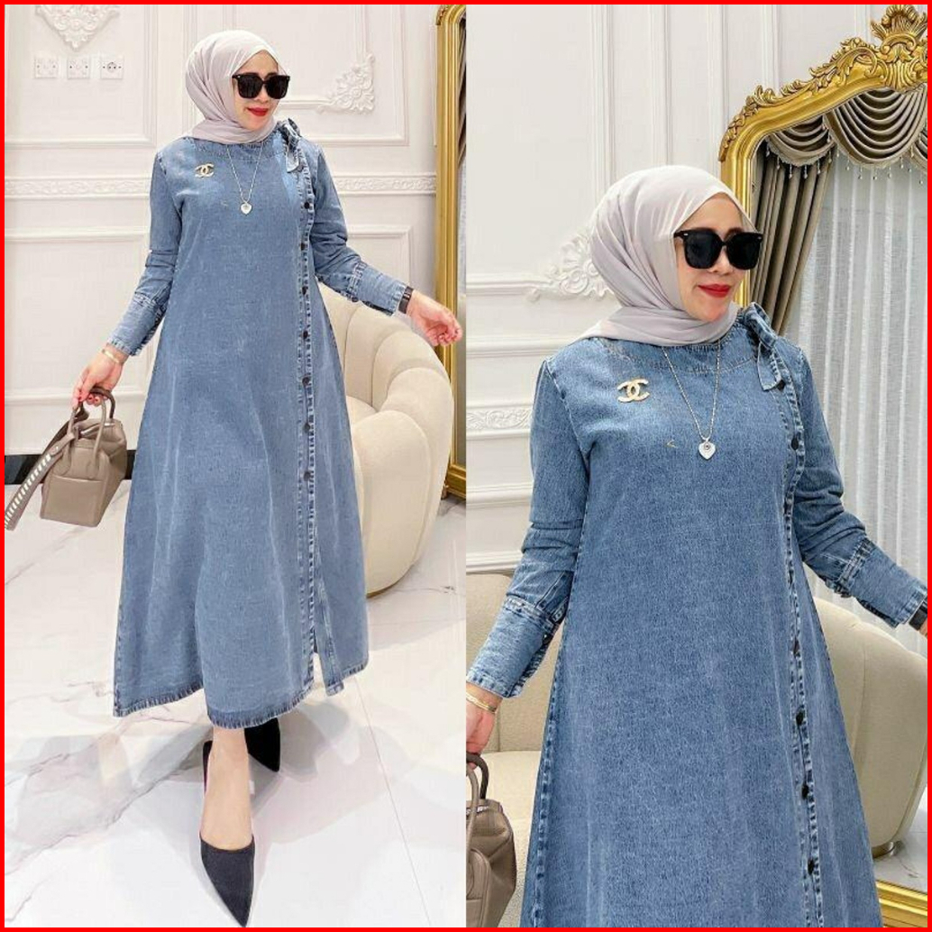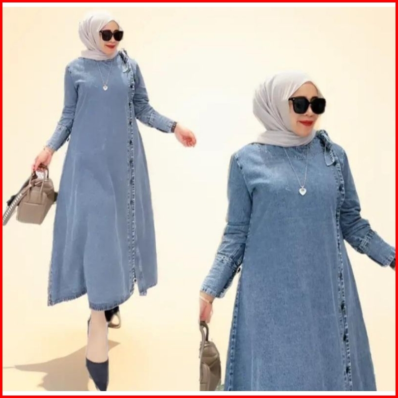 Midi Dress Syafina Fashion Muslim Kekinian Midi Dress Bahann Jeans Terbaru Casual