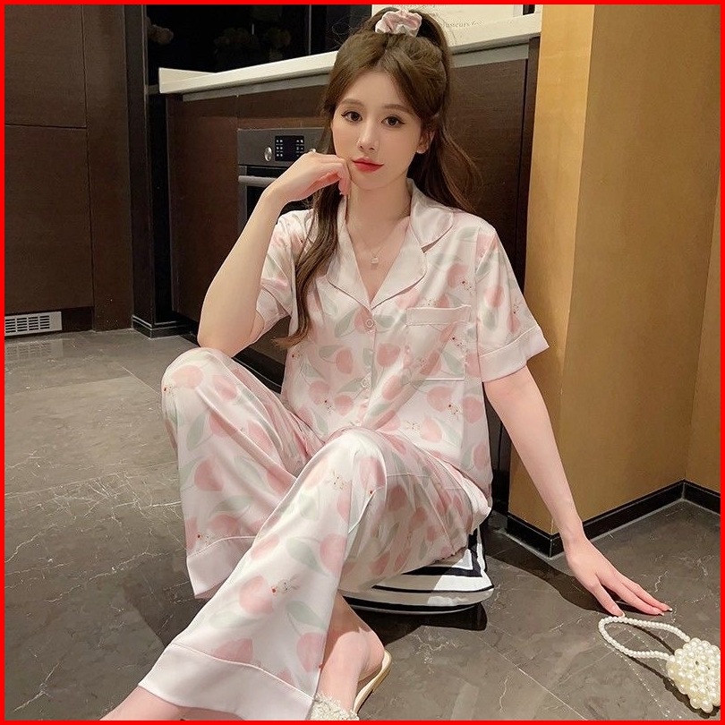 Setel Piyama Dan Baju Rumah Wanita Gaya Korea Berkualitas Tinggi - Lengan Pendek Dengan Celana Panjang