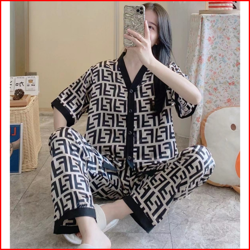 Jibjib Piyama Satin Wanita Baju Tidur Setelan Kemeja Lengan Pendek Celana Panjang Dewasa Remaja Style Korea Py011