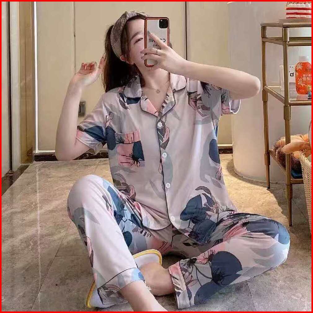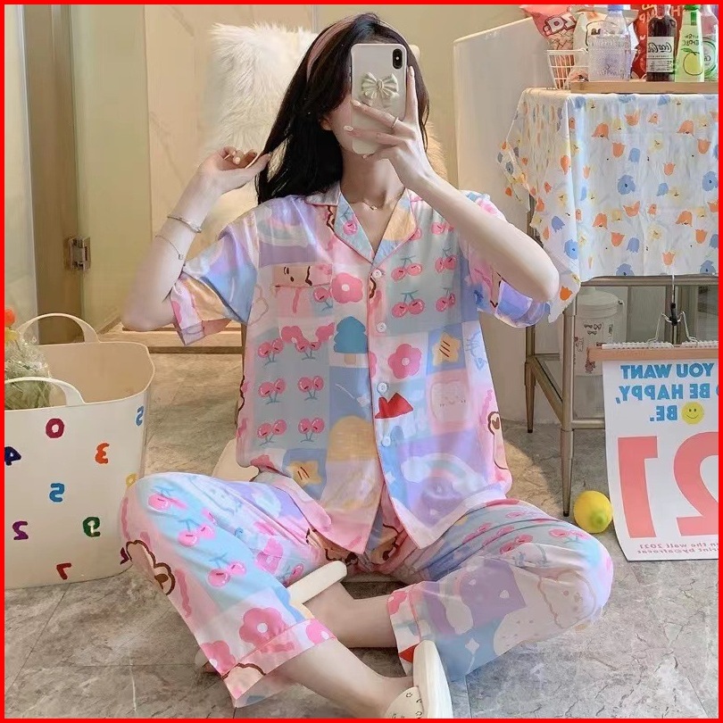 Glory Xxl Baju Tidur Wanita Lengan Pendek Celana Panjang Kancing Piyama Korea Busui Import Terbaru 2025