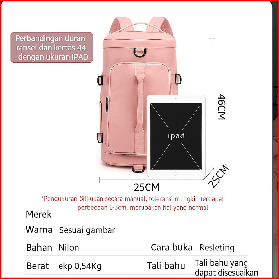 Lyuqe Tas Travel Gym Backpack Anti Air Kompartemen Sepatu Baju Dry Wet Separation Rbk