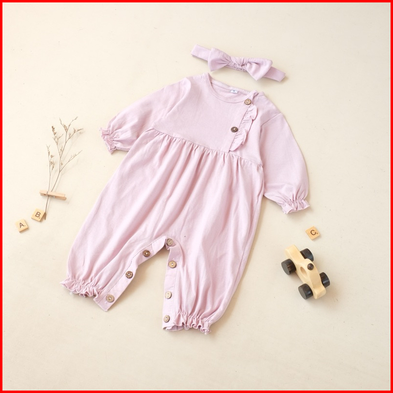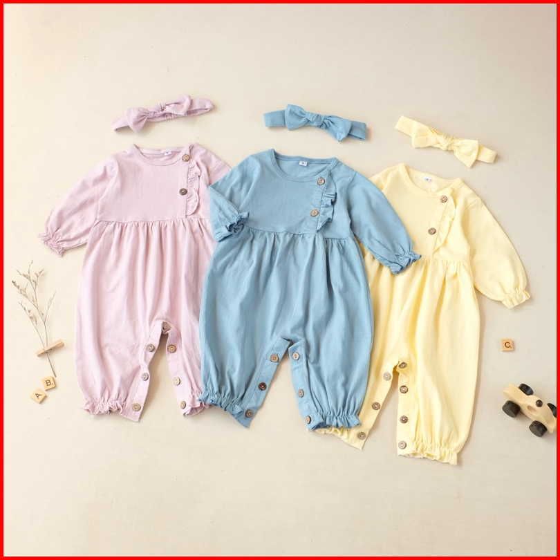 Jumpsuit Bayi Vania Bahan Katun Free Headband 0-12 Bulan