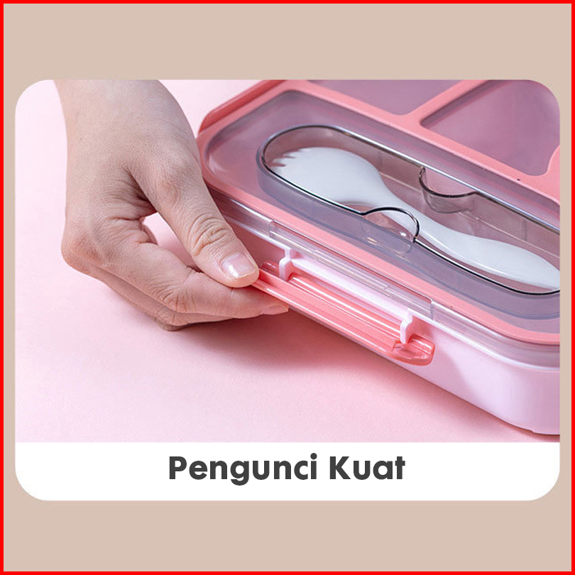 Paus Biru - Lunch Box Kotak Bekal Bento Set Bersekat Kotak Makan Siang Anak Dan Dewasa Sudah Ada Seal Dan Alat Makan