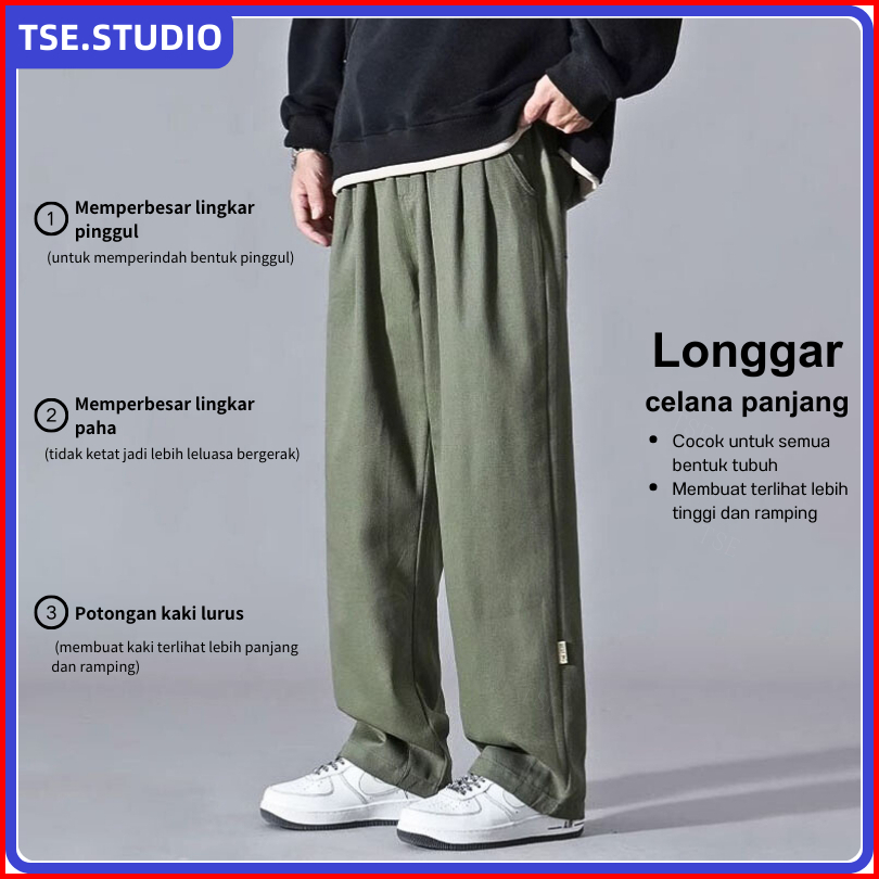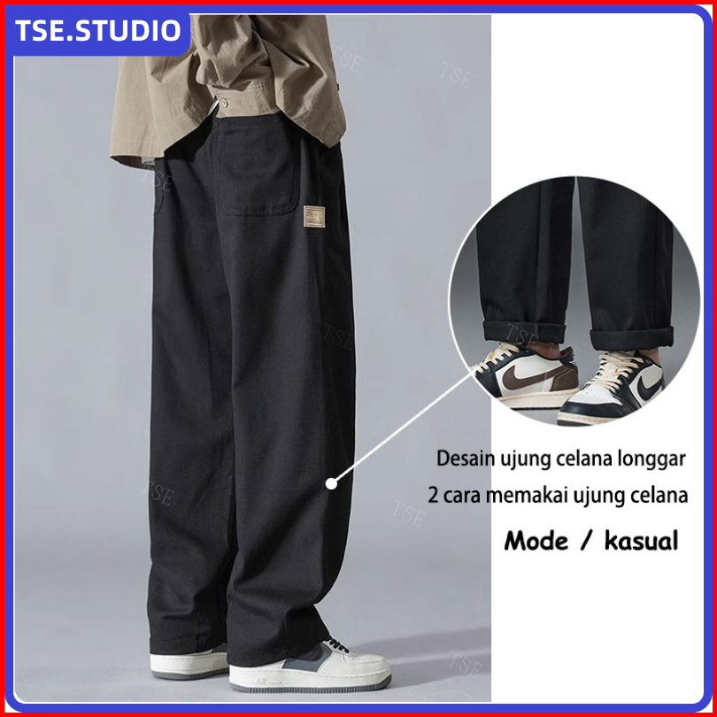 Celana Cargo Panjang Pria Oversize Casual Baggy Straights Korean Style Fashion Wide Leg Cargo Pants