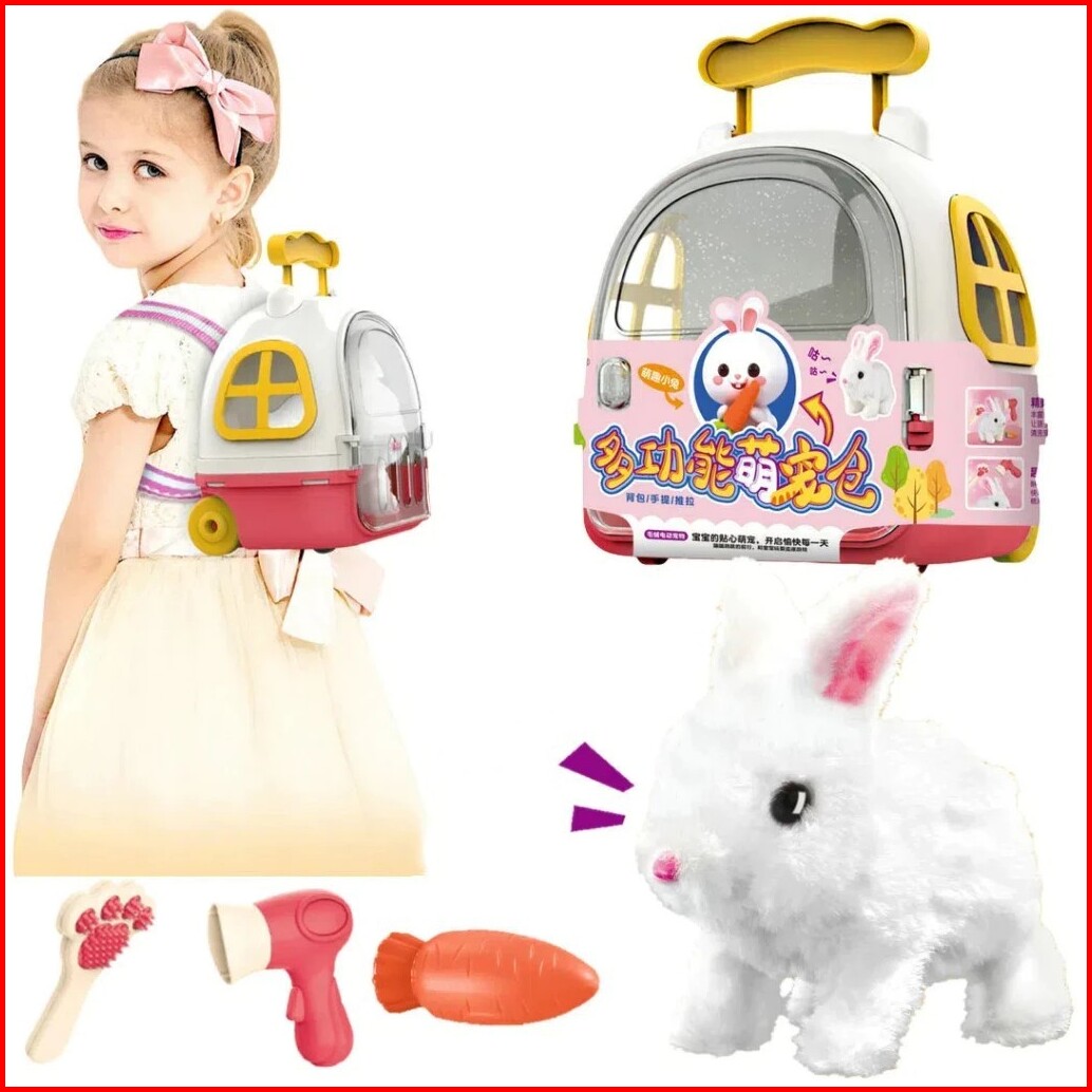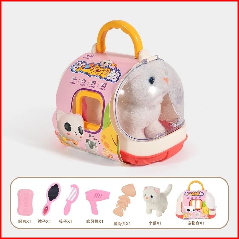 Kugoo Mainan Pet House Hewan Peliharaan Anjing Kucing Bergerak Seperti Sungguhan Tampak Nyata Boneka Kelinci Kandang Sim