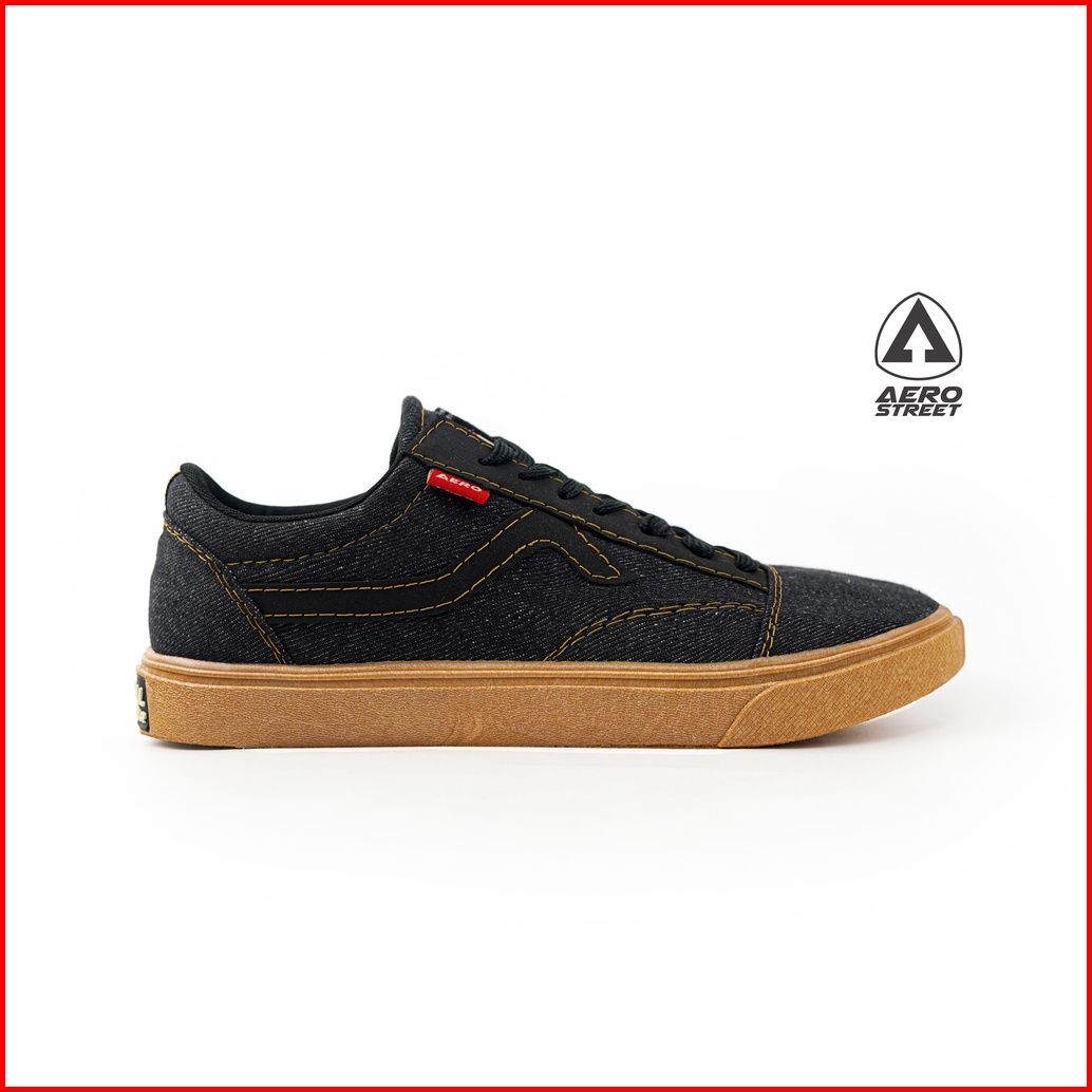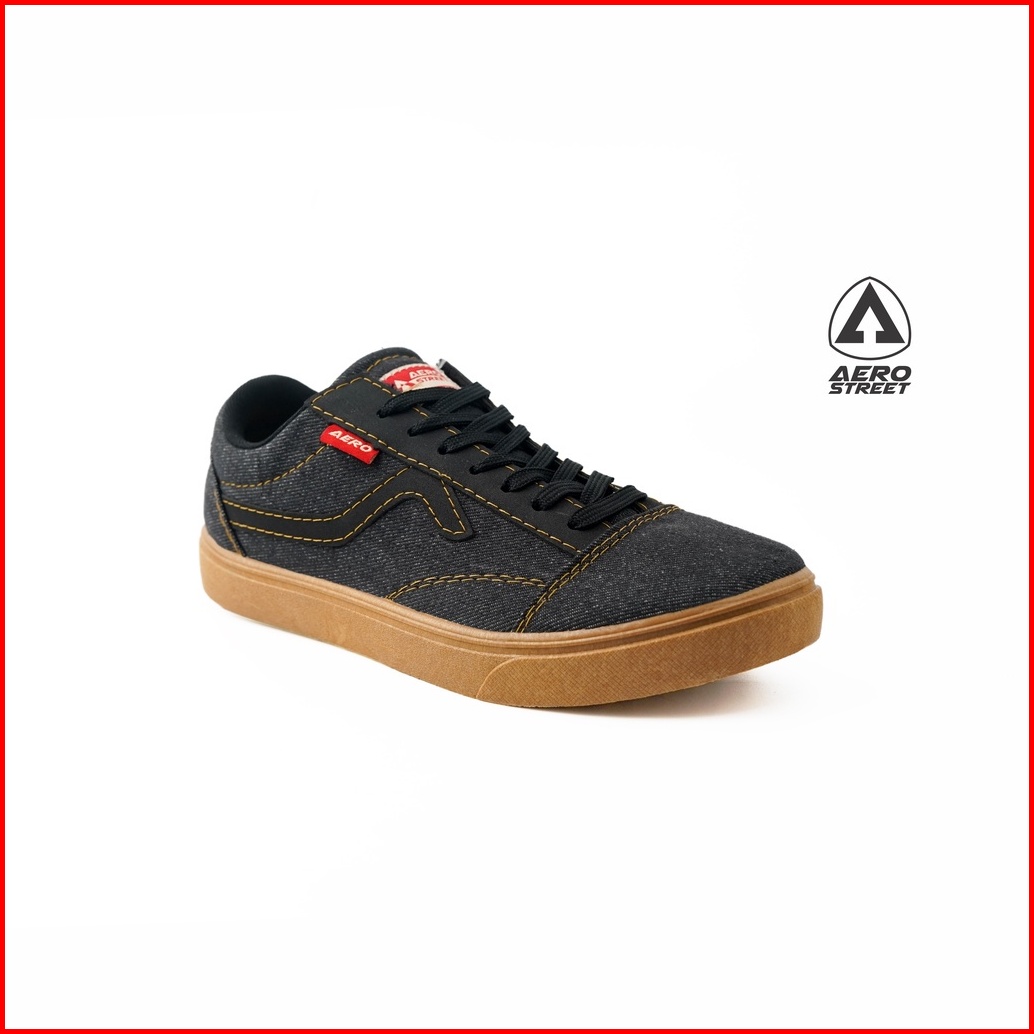 Aerostreet 37-44 Massive Low Gum Black Denim - Sepatu Sneakers Casual