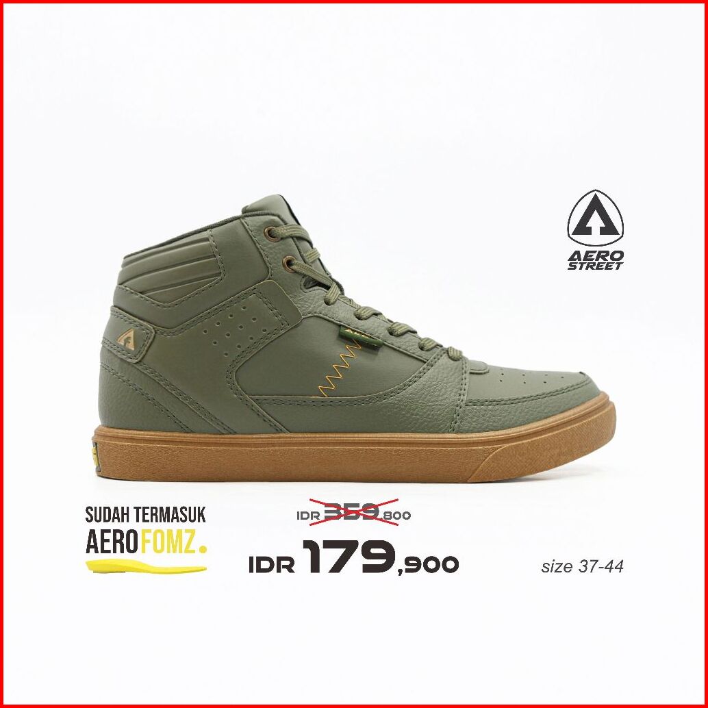 Aerostreet 37-44 Hoops High Gum Olive Olive- Sepatu Sneakers Casual Pria Wanita Aero Street 21jj10