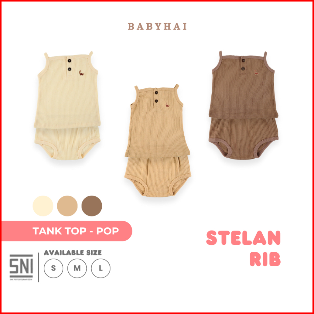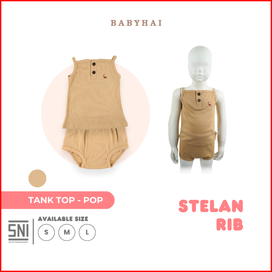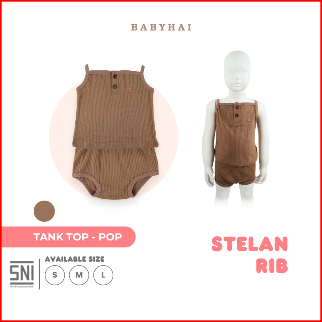 Baby Hai Rib Suit - Setelan Tank Top Salur Baju Pendek Celana Pop - Seri Coklat