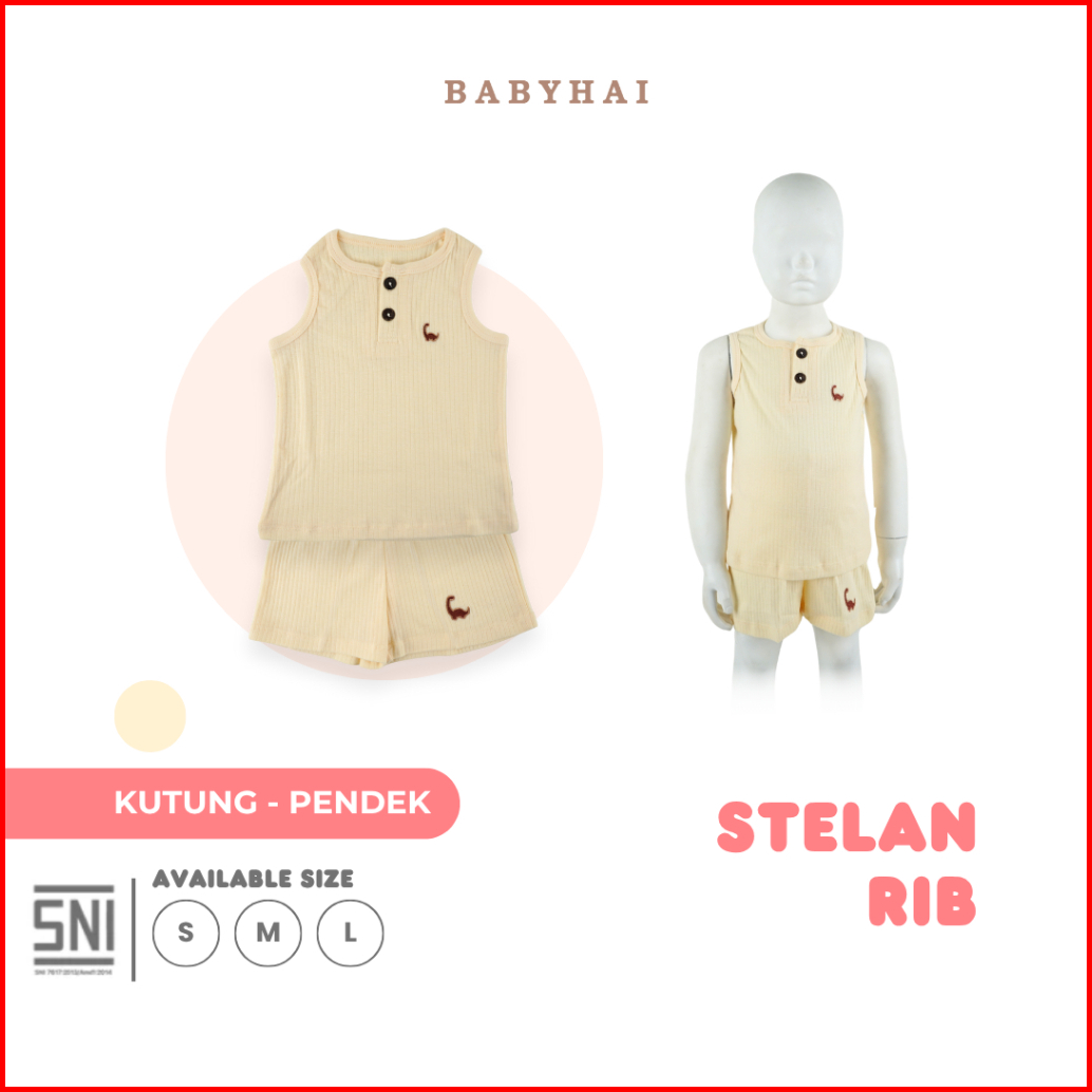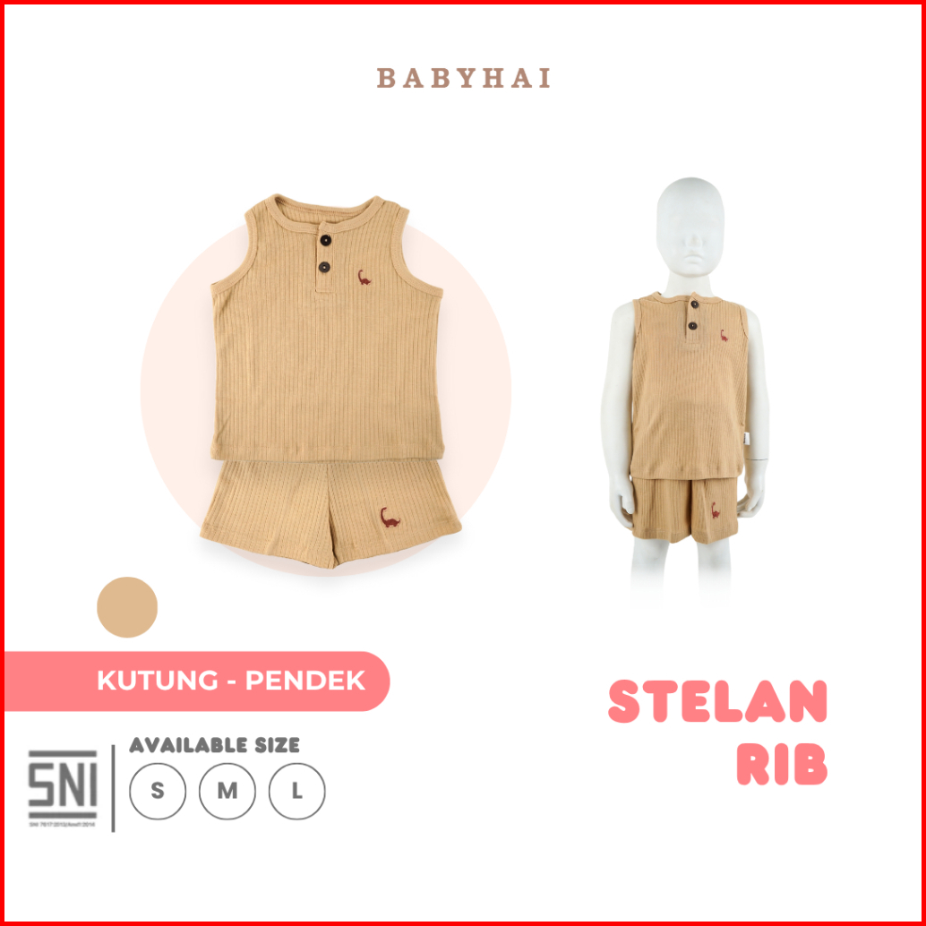 Baby Hai Rib Suit - Setelan Kutung Salur Baju Pendek Celana Pendek Kotak - Seri Coklat