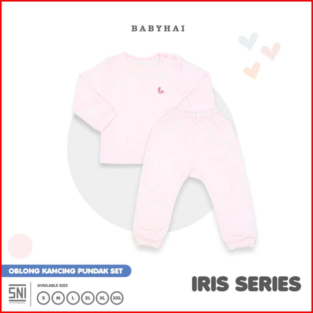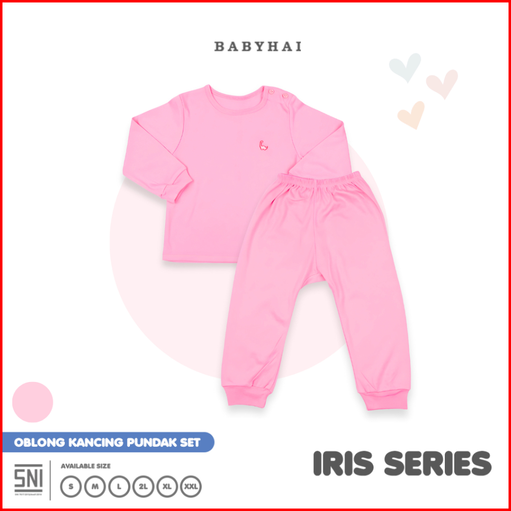 Baby Hai Iris Set - Setelan Kancing Pundak Polos Baju Panjang Celana Panjang - Seri Pink