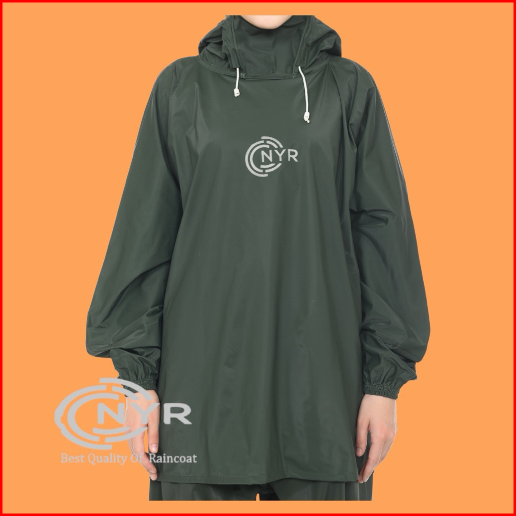 Jas Hujan Nyr Hoodie Tanpa Resleting Tebal Pria Wanita Setelan Celana Anti Air Parasit Pvc