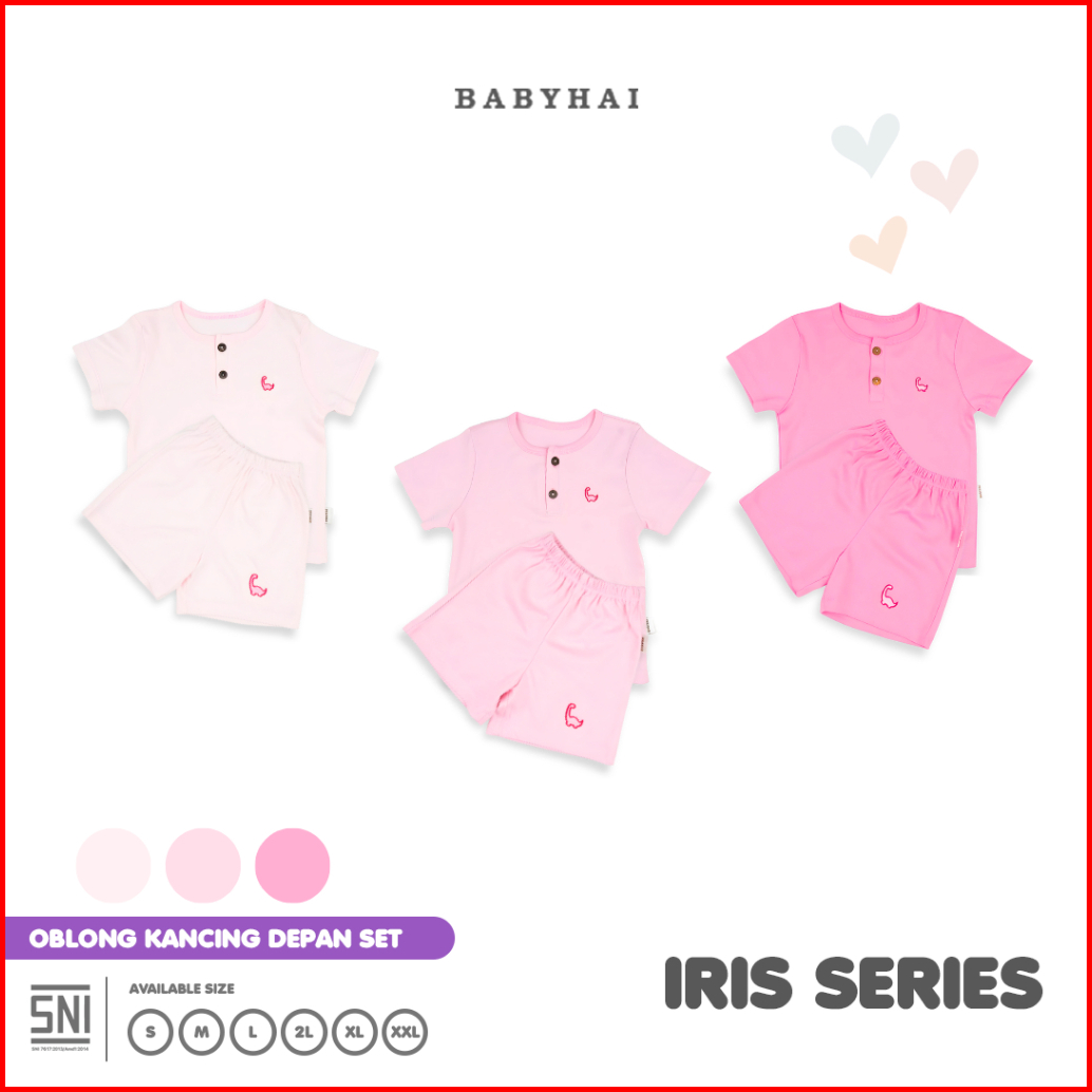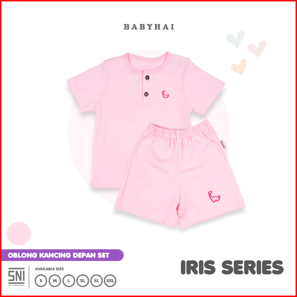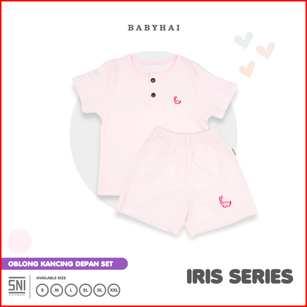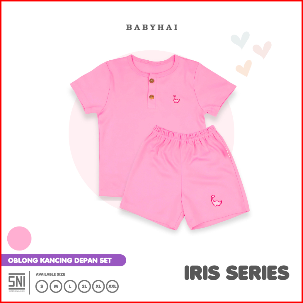 Baby Hai Iris Set - Setelan Kancing Depan Polos Baju Pendek Celana Pendek - Seri Pink