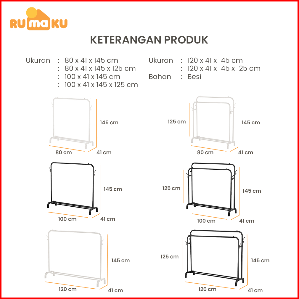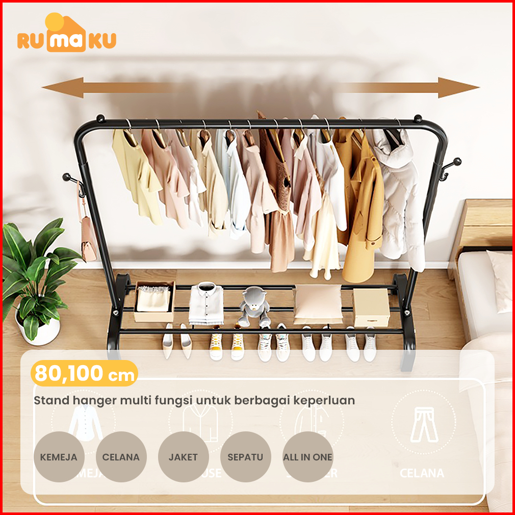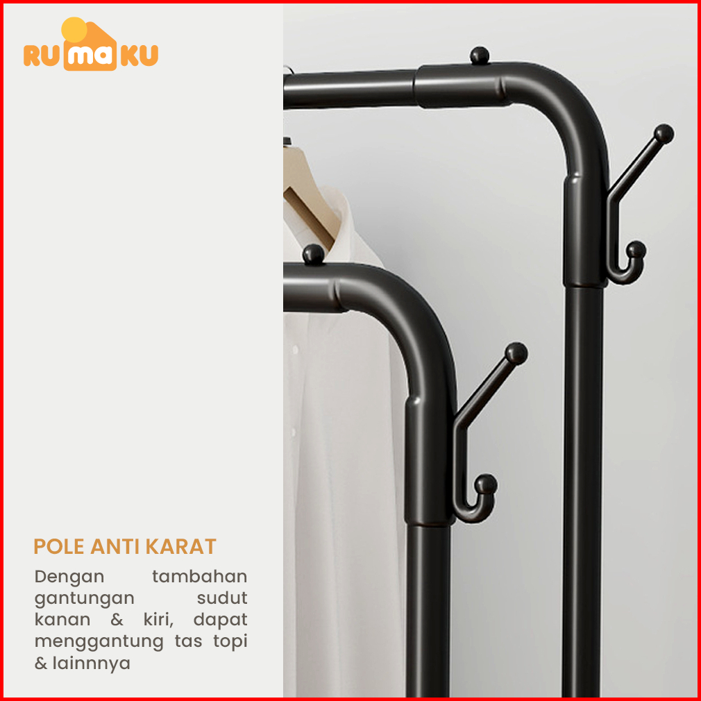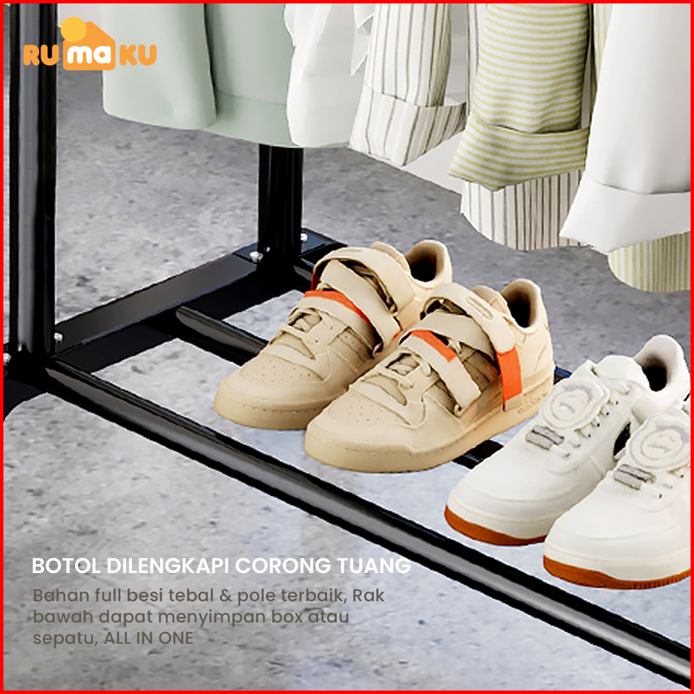 Rumaku Stand Hanger Gantungan Baju Berdiri Bahan Besi Tempat Gantung Gawangan Rak Baju Serbaguna Premium Quality