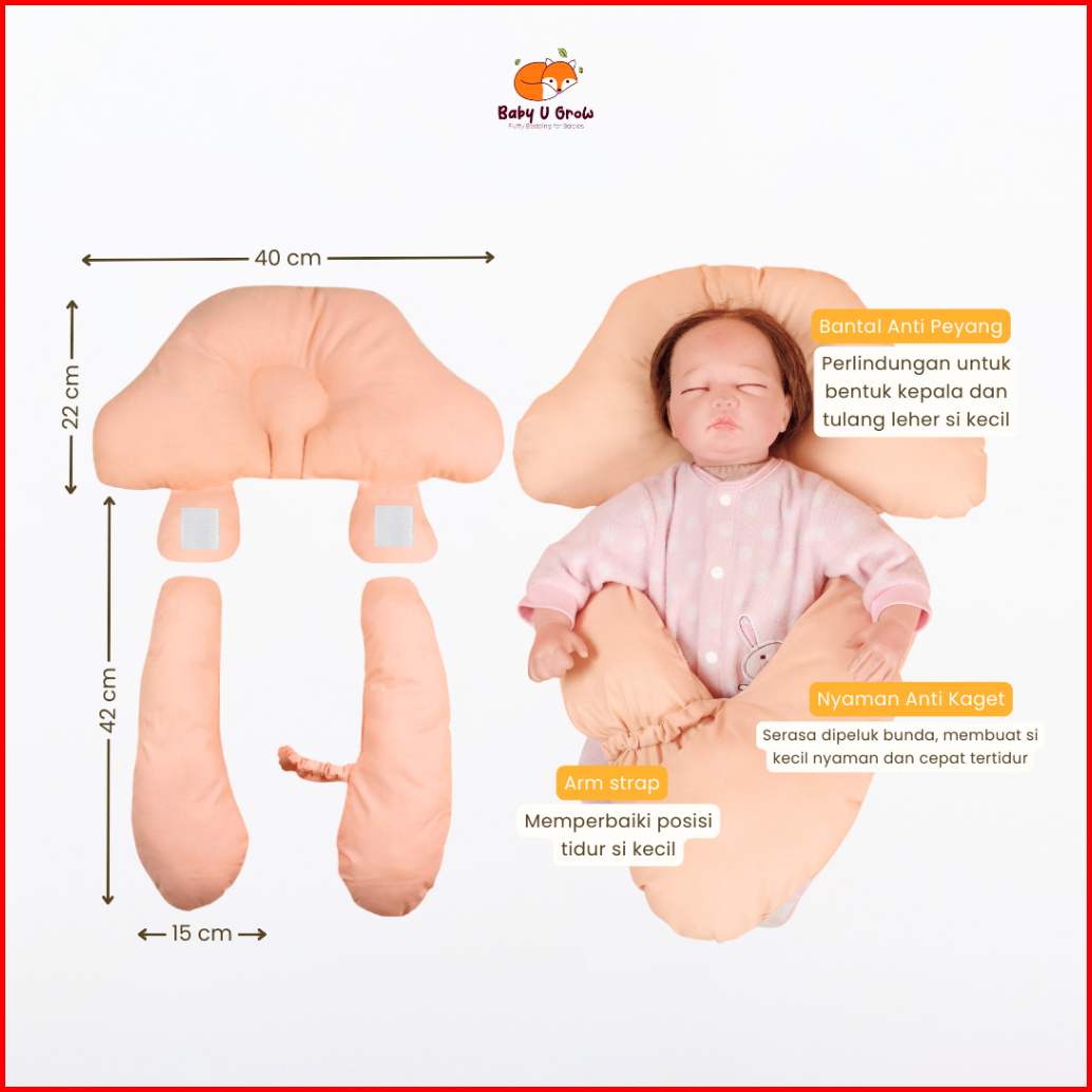 Baby U Grow - Bantal Guling Peluk Stereotip Bayi Bantal Anti Kaget Anti Peyang 2in1 - Katun Catra
