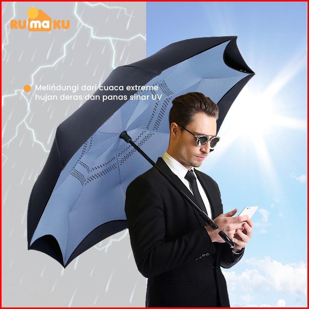 Rumaku Payung Terbalik Reverse Umbrella Payung Mobil Besar Gagang C