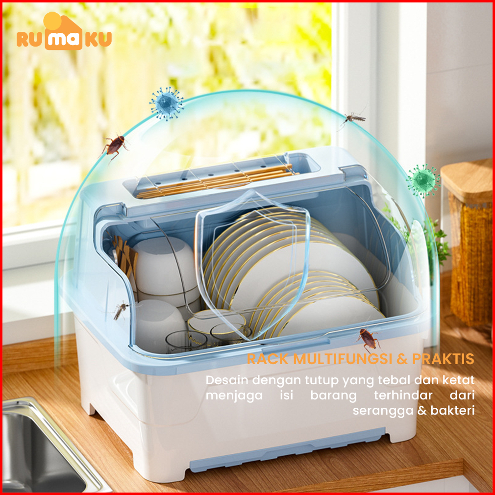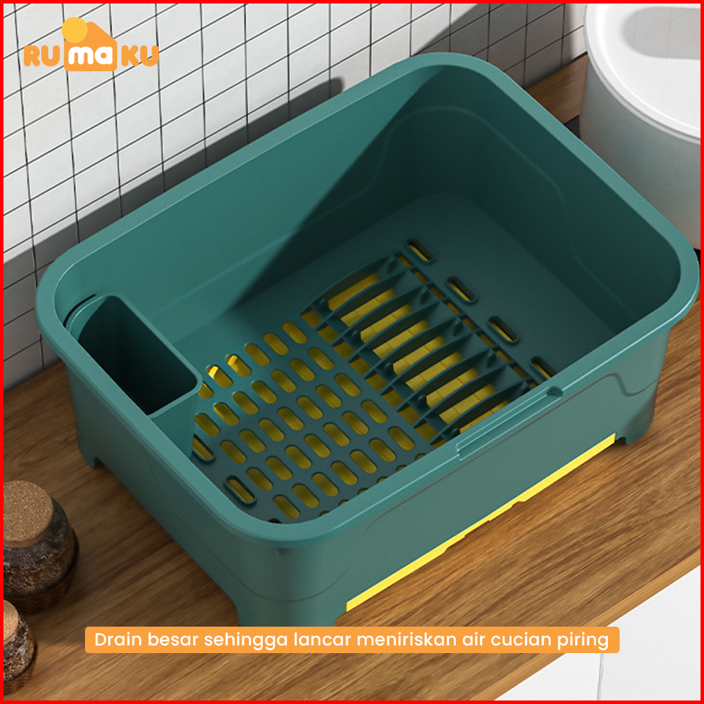 Rumaku Rak Piring Dengan Tirisan Air Rak Dapur Multifungsi Tempat Penyimpanan Alat Makan Piring Mangkuk Sendok Sumpit Ga