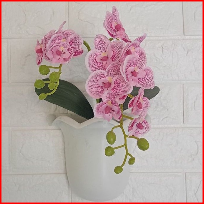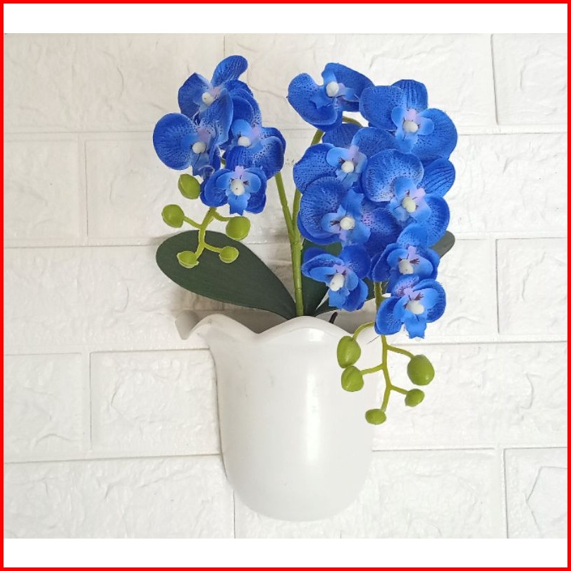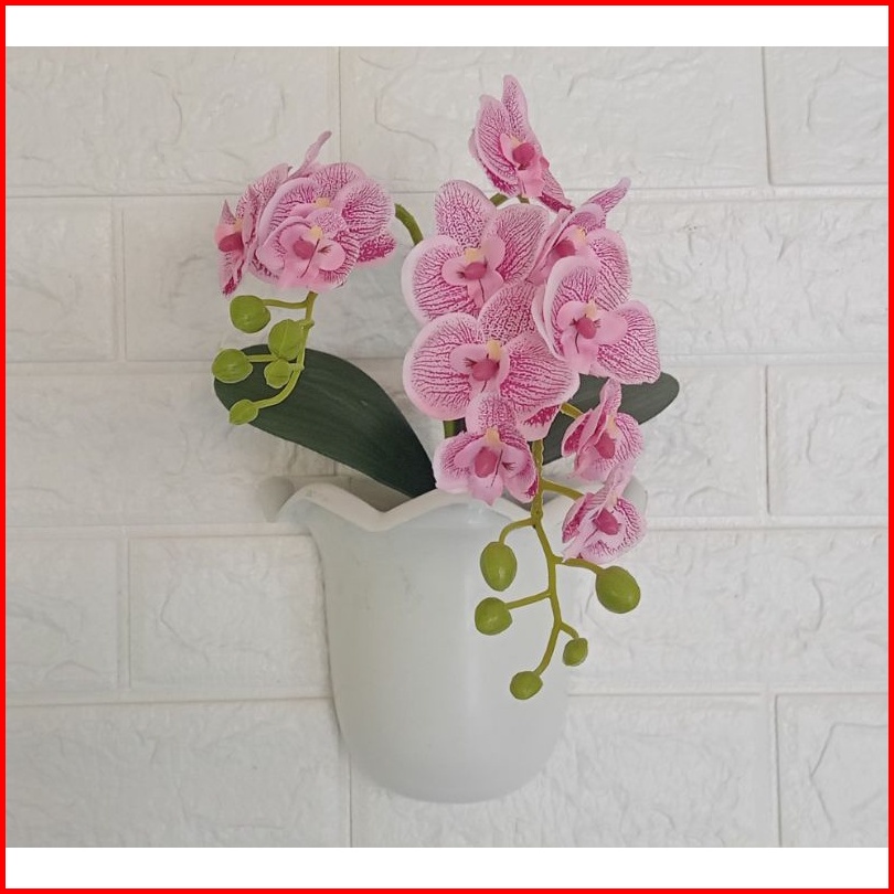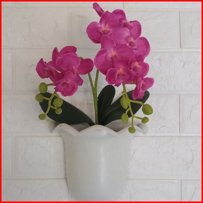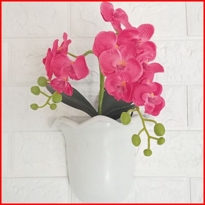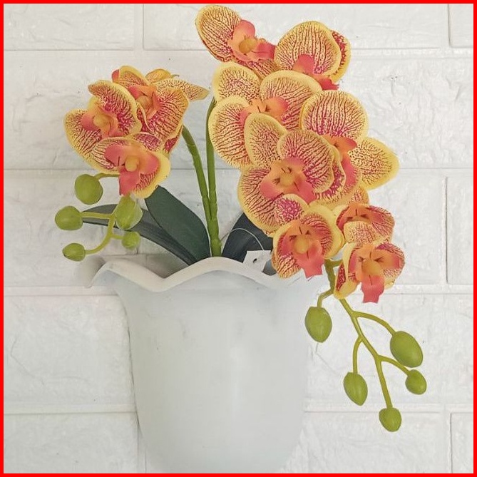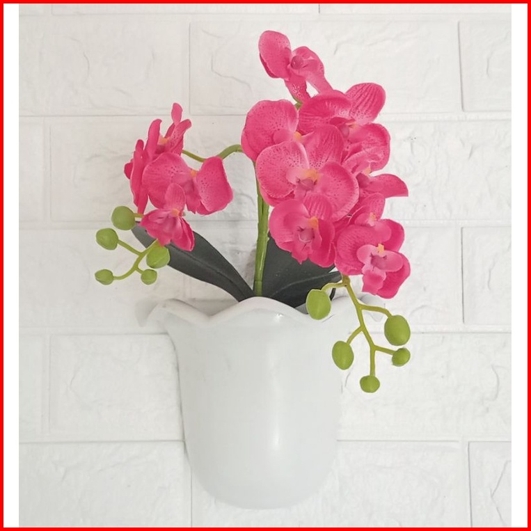 Bunga Anggrek Artificial Pot Tempel Dinding Bunga Anggrek Kain Cabang Dua Pot Tempel Dinding