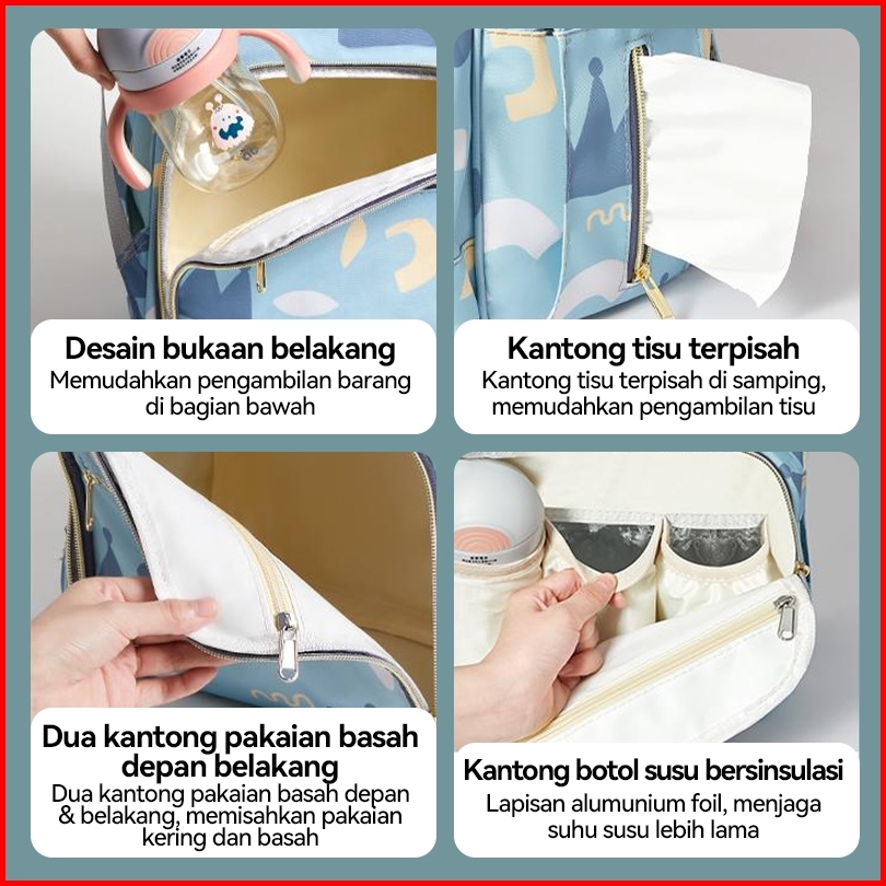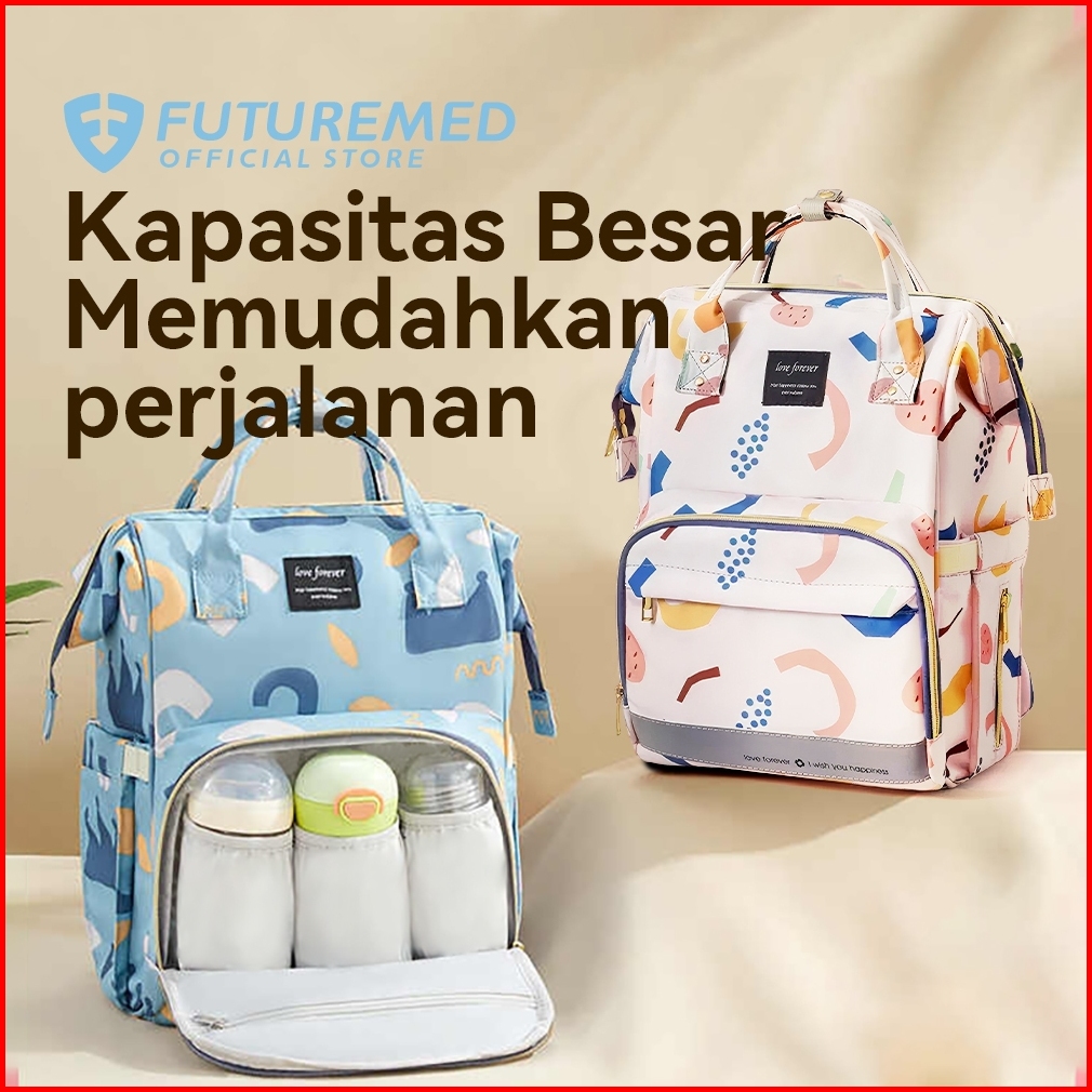Futuremed Diaper Bag Tas Bayi Multifungsi Baby Tas Popok Tas Ransel Perlengkapan Bayi Anti Air Lapisan Isolasi Botol Bay