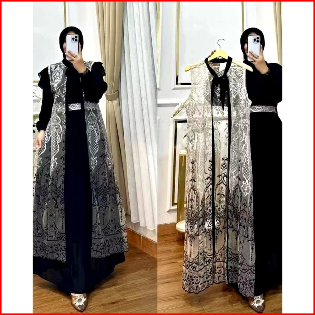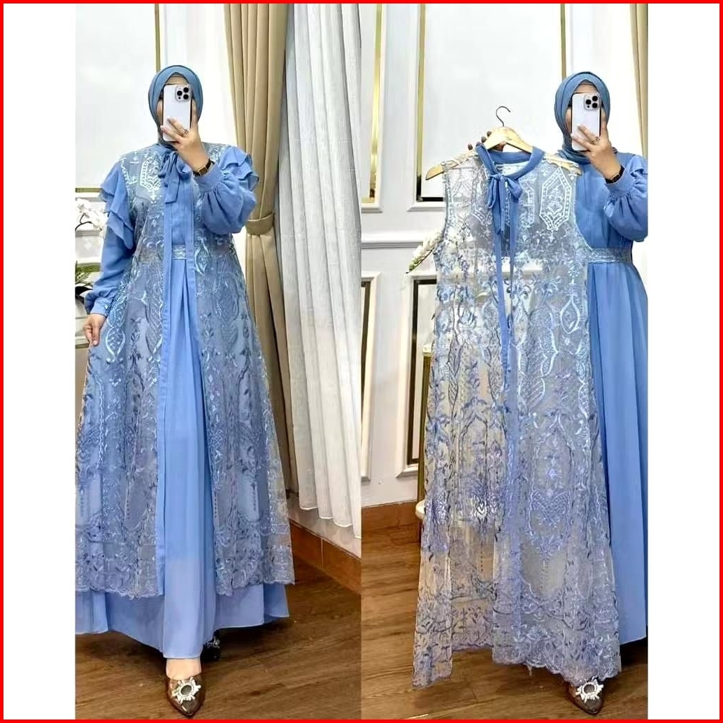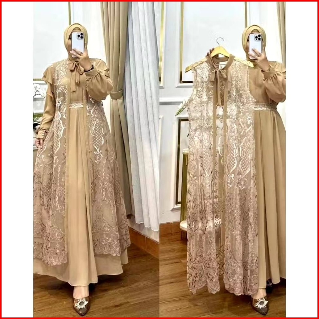Nashita Dress Gamis Bahan Ceruti Babydoll Aplikasi Auter Brukat Gamis Pesta Gamis Kondangan Mewah