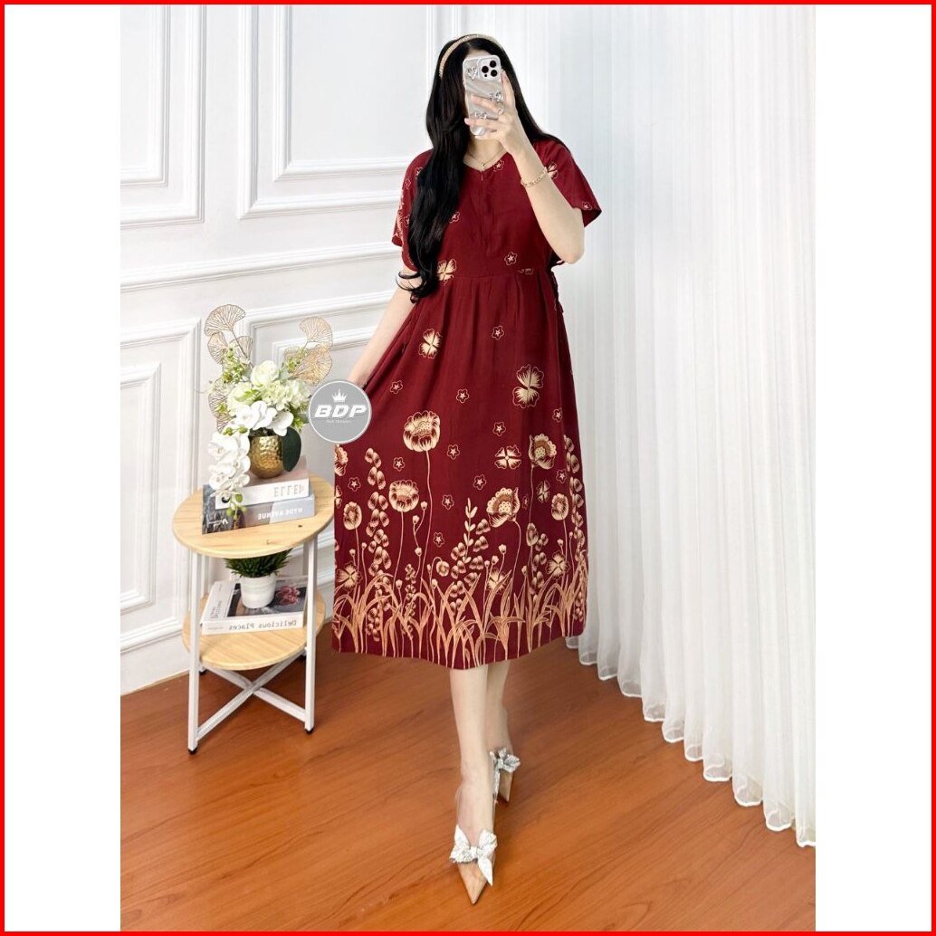 Inoor - Daster Wanita Kekinian Rayon Busui Resleting Depan - Daster Wanita Lengan Pendek Motif Terbaru - Baju Tidur Dast