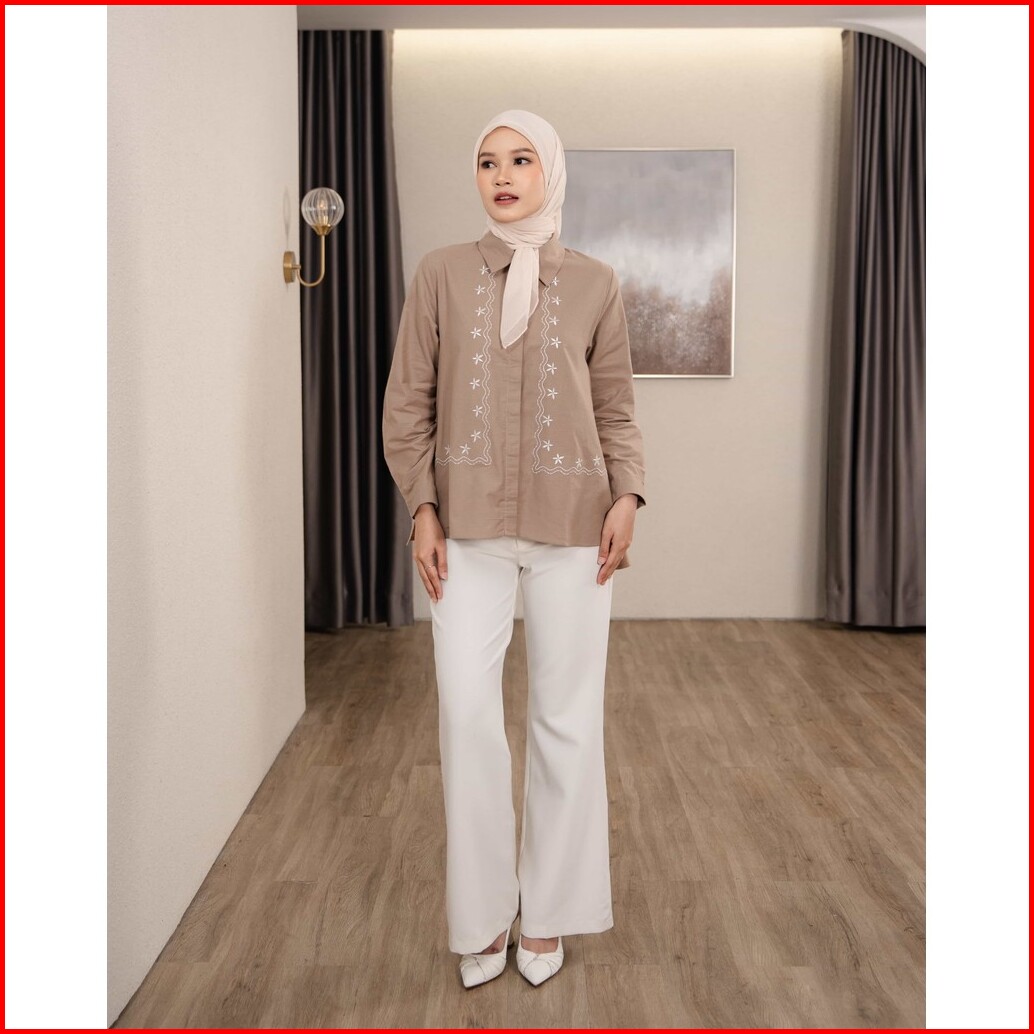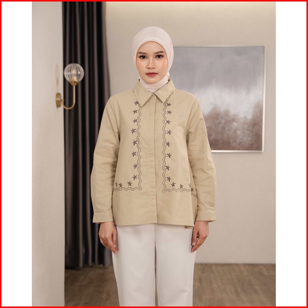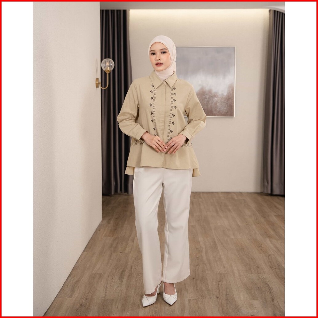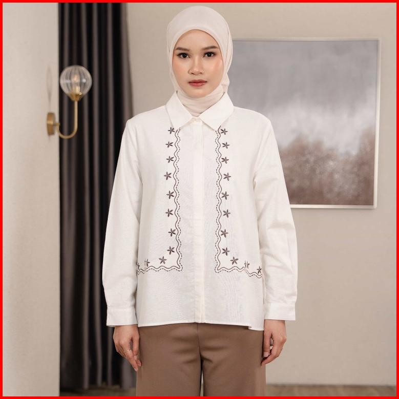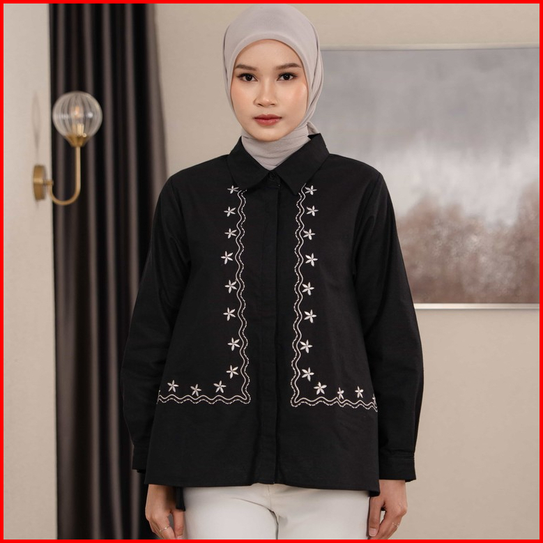 Mayoutfit Mychia Shirt Kemeja Wanita Basic Motif Bordir Embroidery