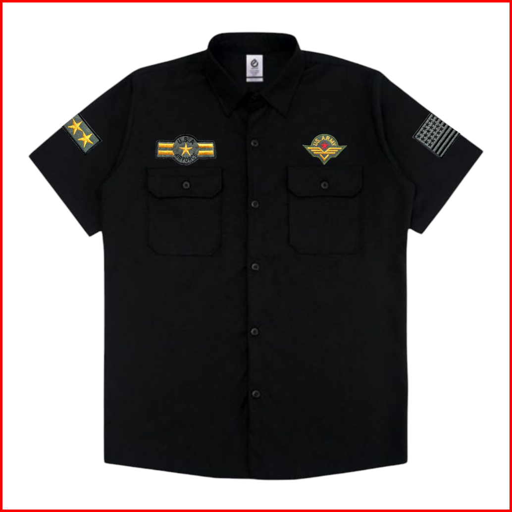 Kemeja Workshit Lengan Pendek Slimfit Pria Dewasa Katun Drill Hitam Bordir Premium Cowok Slim Murah.