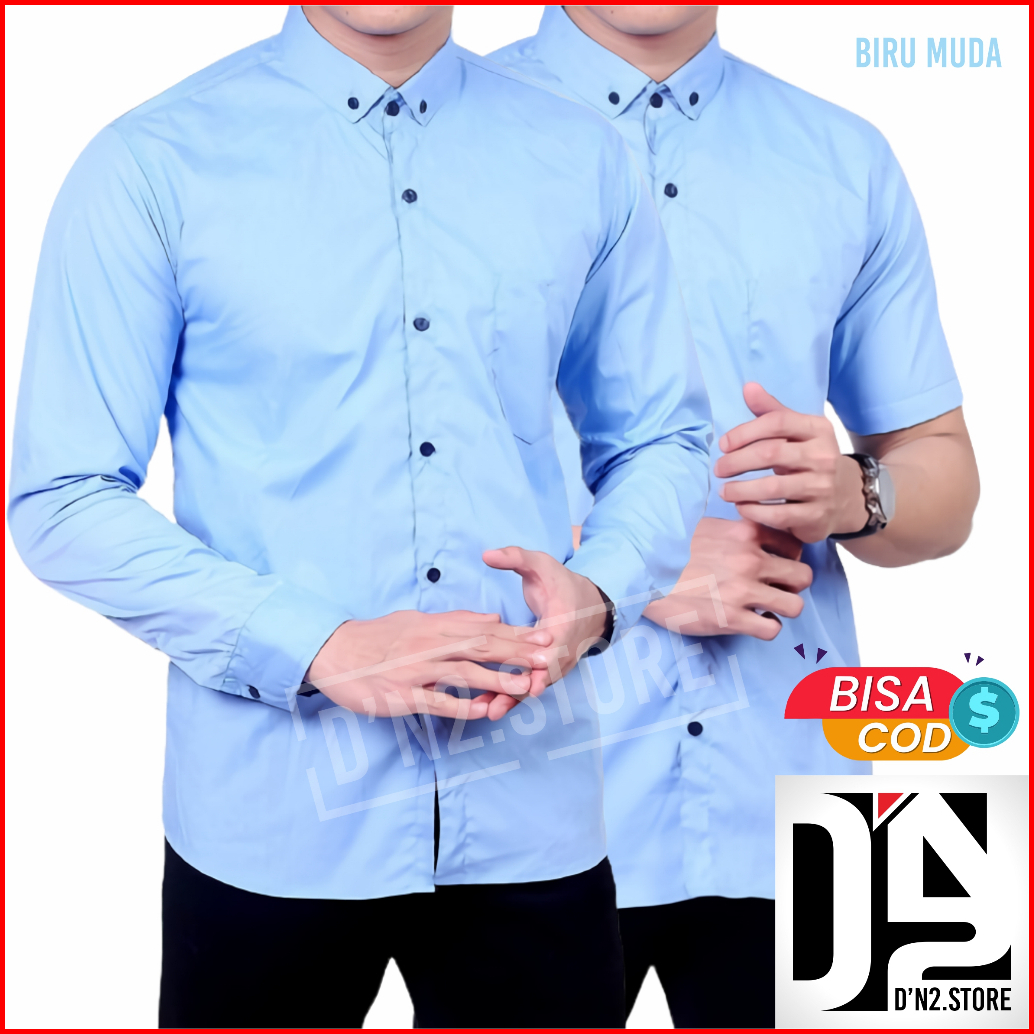 Kemeja Pria Biru Muda Panjang - Lengan Pendek - Kualitas Premium - Kemeja Atasan Kasual