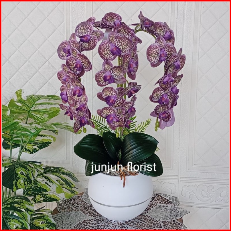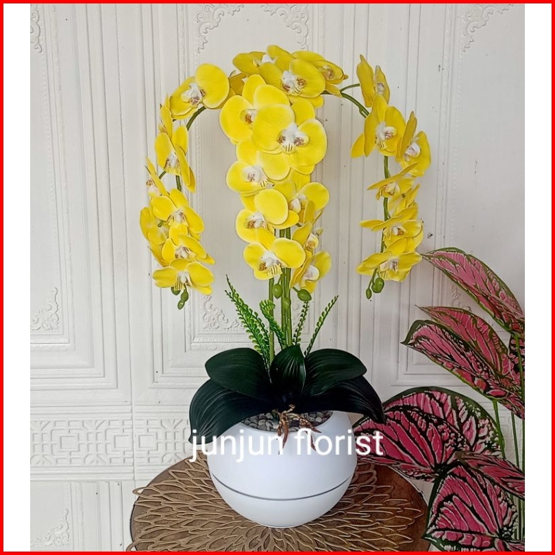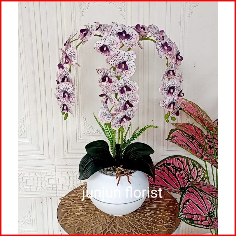 Bunga Anggrek Latex Murah 3 Cabang Vas Bola