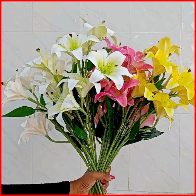Bunga Lily Latex Artificial 9 Kuntum Tinggi 60cm