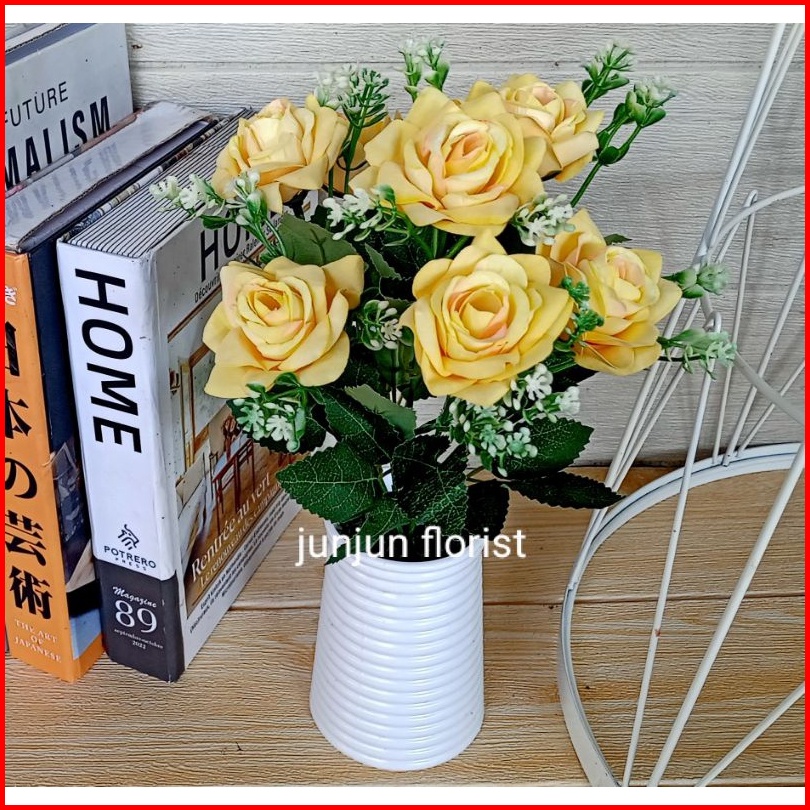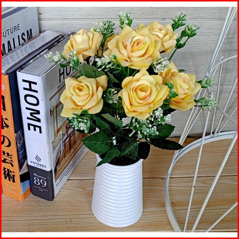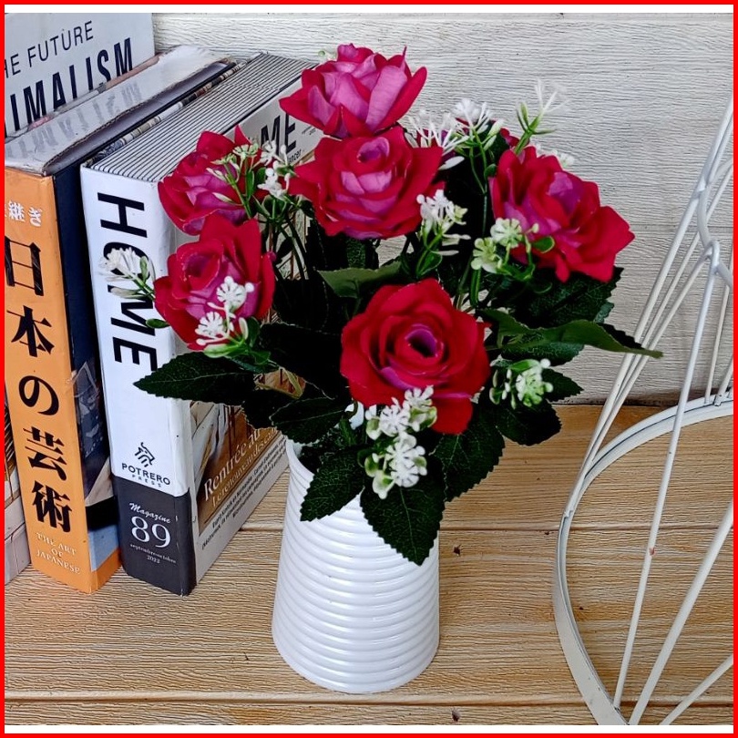 Bunga Mawar Hias Bludru Pot Ulir 30cm