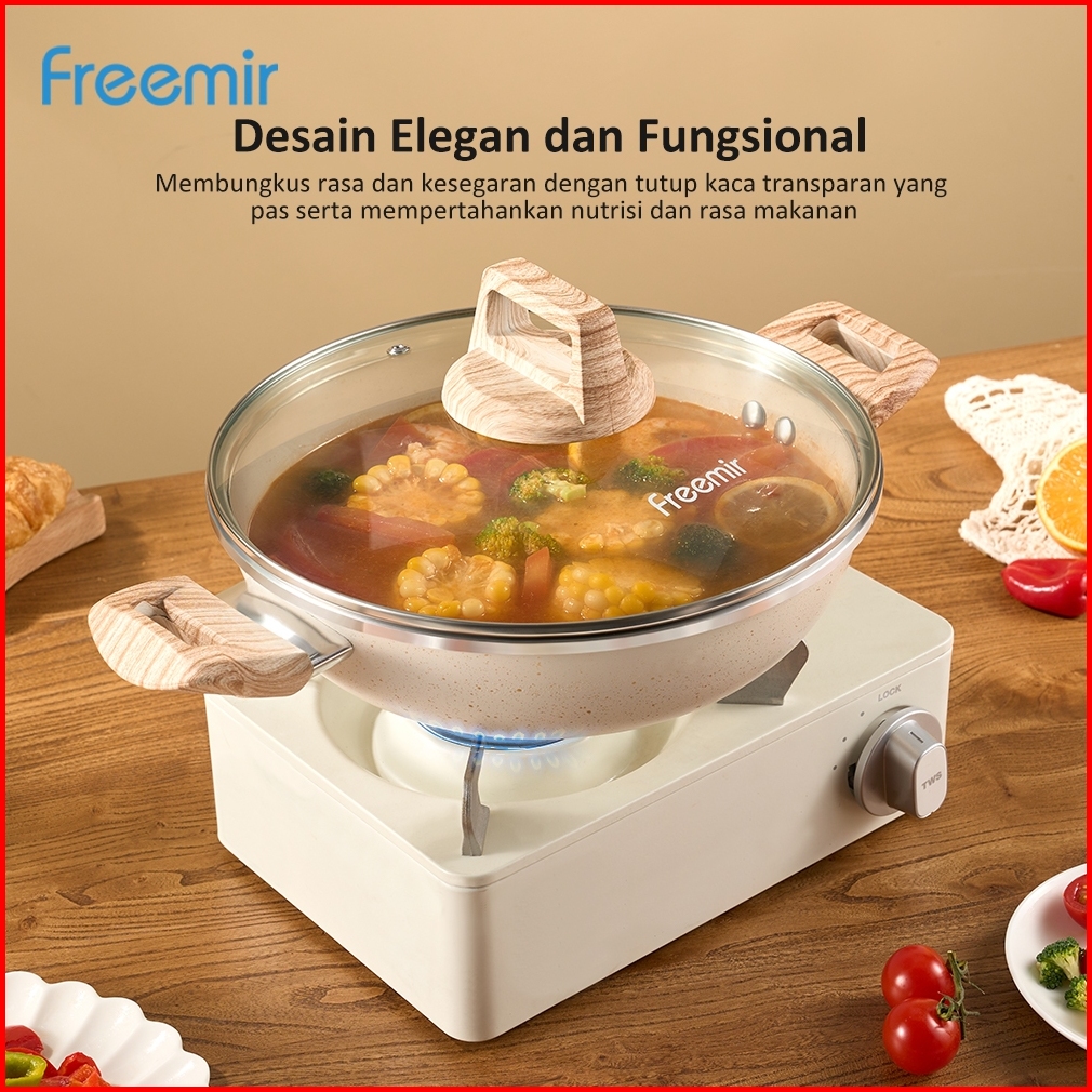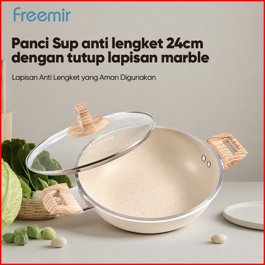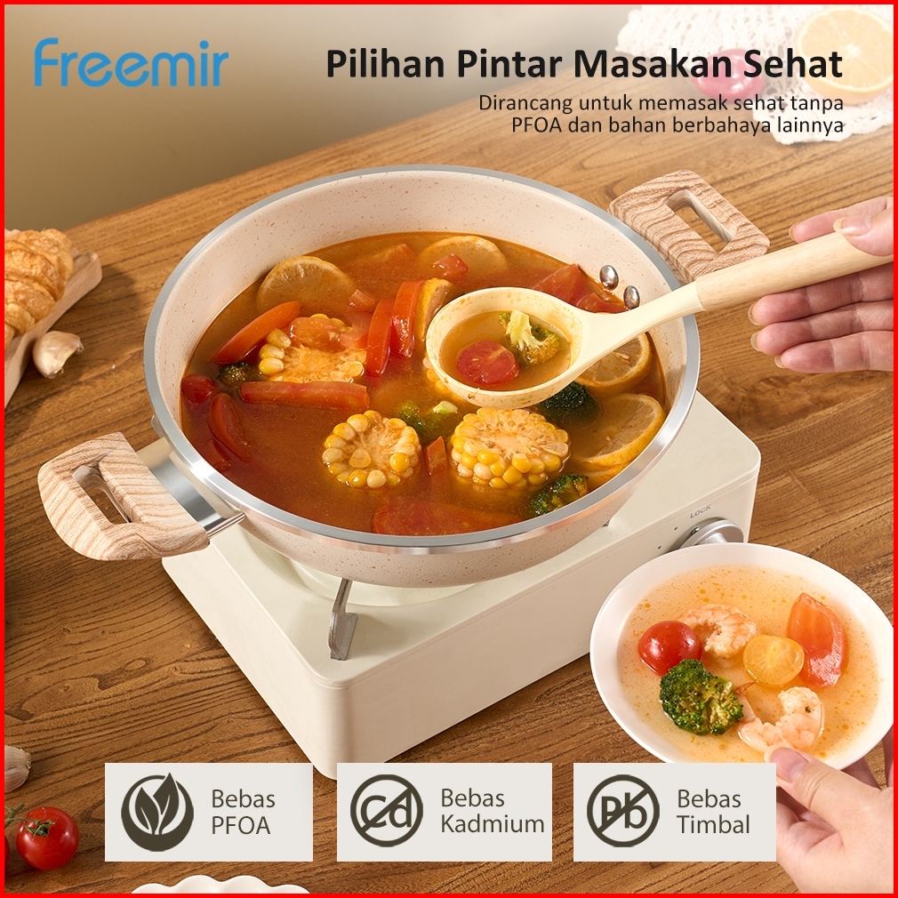 Special Freemir Wajan Panci Penggorengan Beige Granit Anti Lengket 24cm Tinggi 7.5cm Serbaguna
