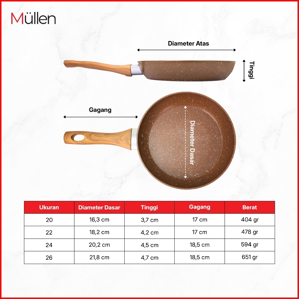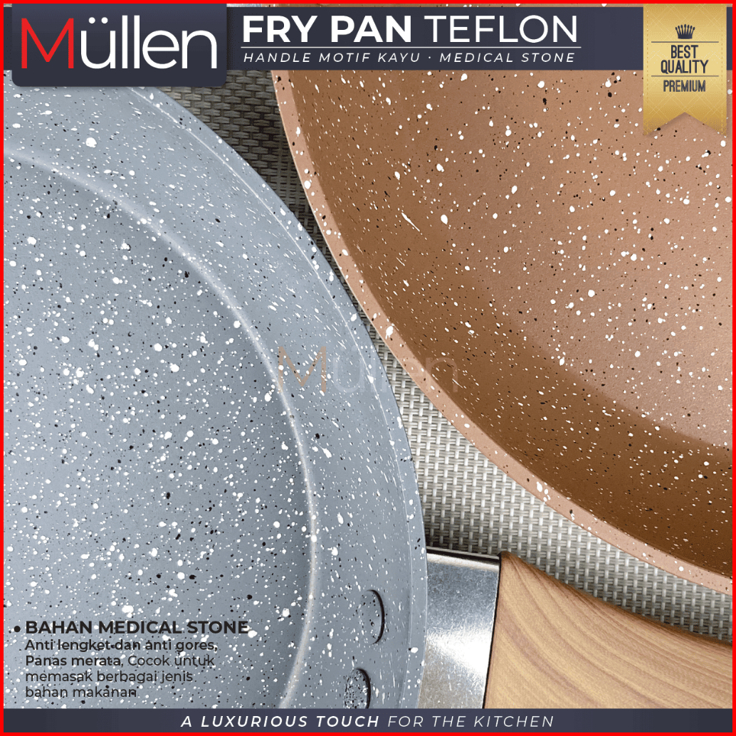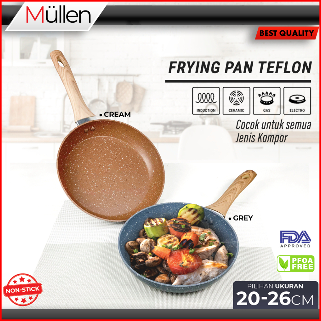 Mullen Fry Pan Marble Wajan Penggorengan Anti Lengket Kitchenware Double Bottom Gagang Premium Ukuran 20 22 24 26 Cm