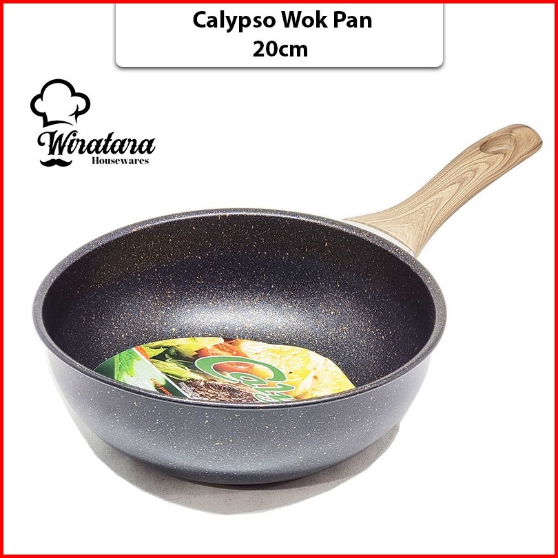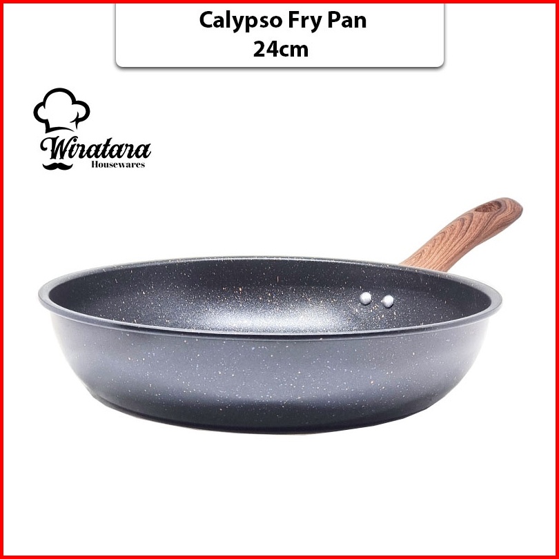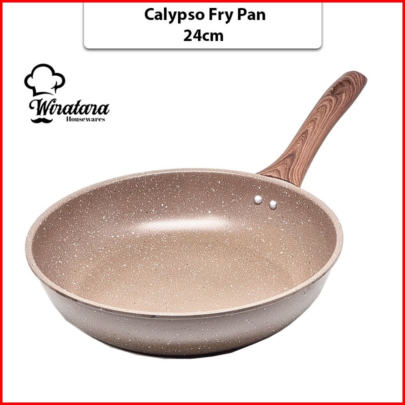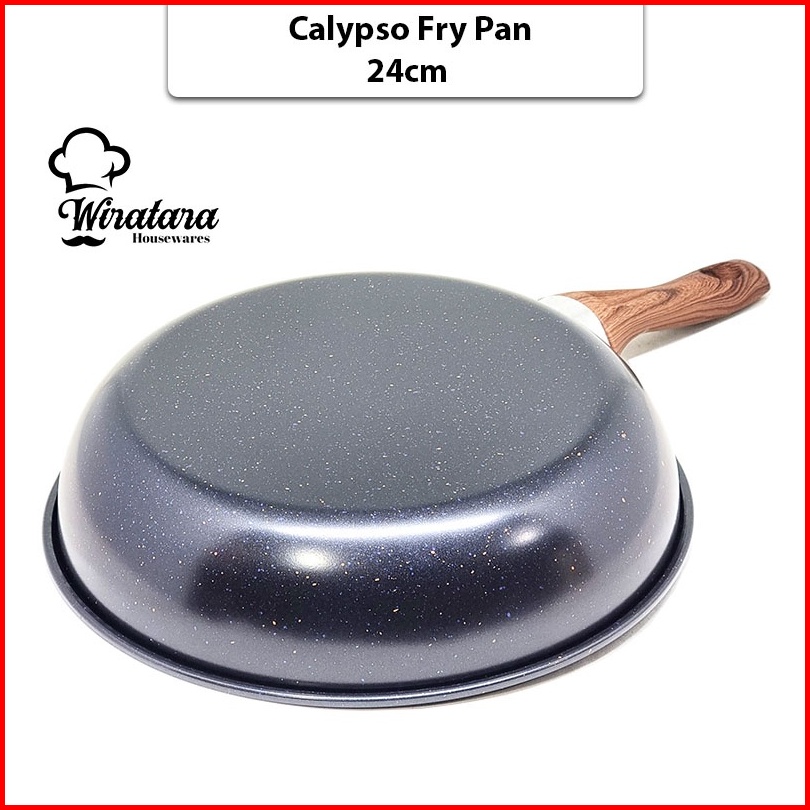 Calypso Fry Pan Anti Lengket Enamel Gagang Kayu Wajan Penggorengan Telur Teflon Teplon