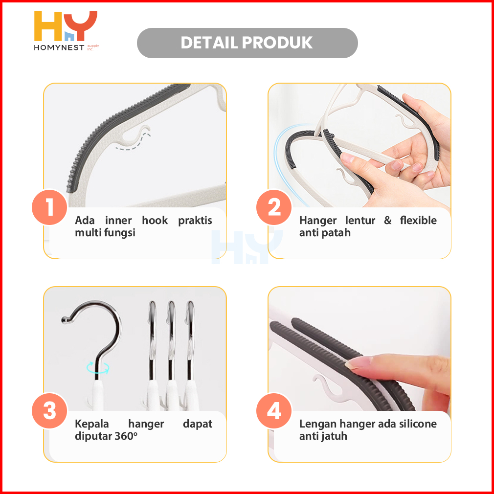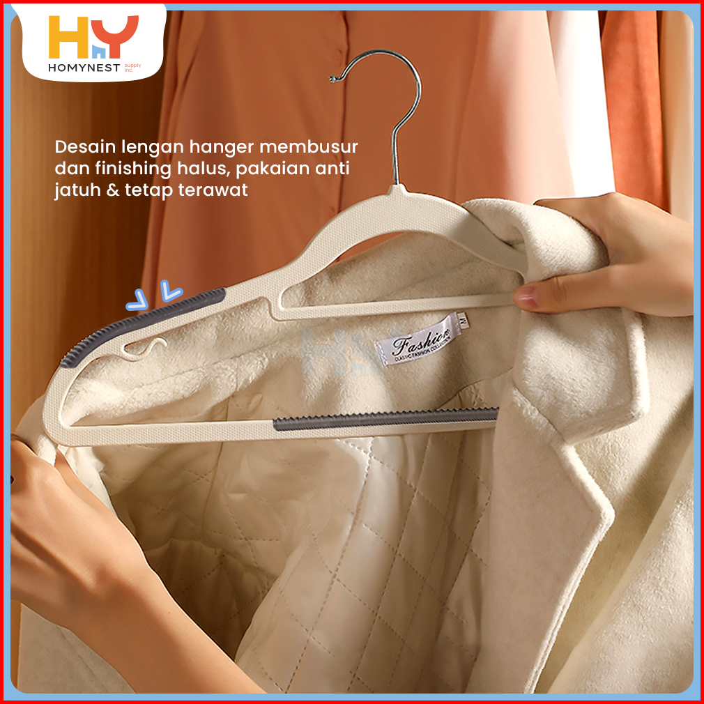 Homynest Gantungan Pakaian 1 Set Isi 10 Pcs Hanger Baju Bahan Tebal Multifungsi Gantungan Anti Slip
