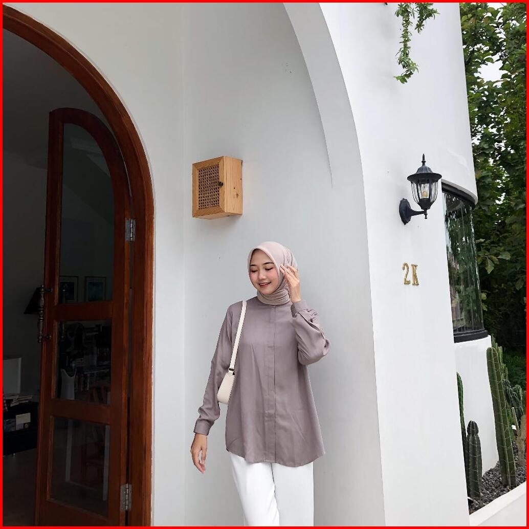 Lalucuku Kemeja Wanita Audy Basic Atasan Baju Casual Up To Date Kekinian